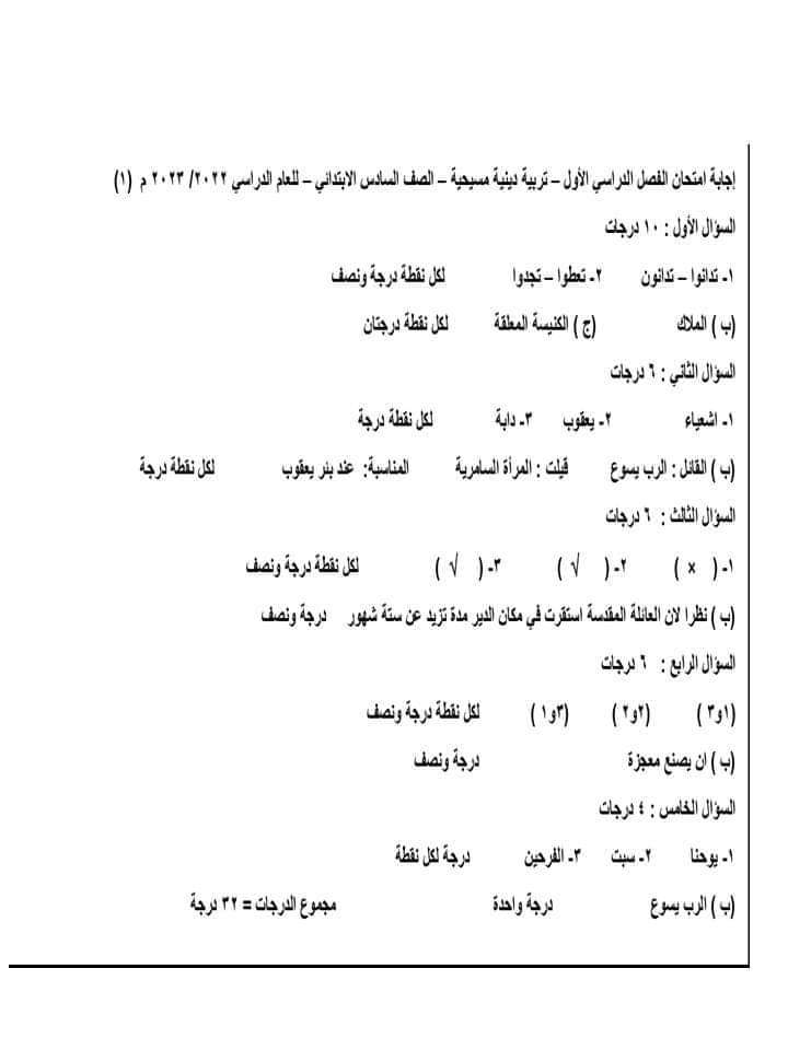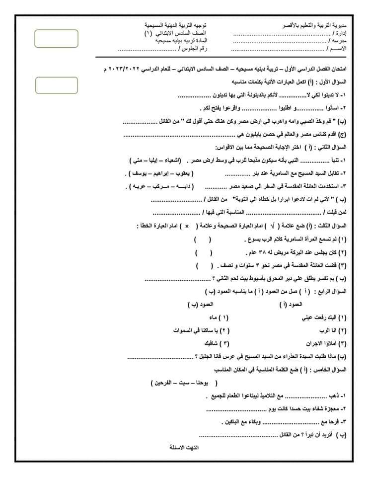 تحميل امتحان توجيه الأقصر التربية المسيحية الصف السادس الابتدائي الترم الاول 2023 بالاجابات