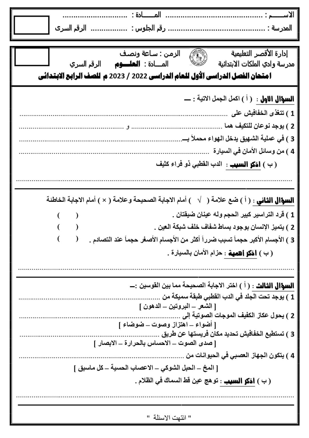 تحميل امتحان توجيه الأقصر علوم الصف الرابع الابتدائي الترم الاول 2023 بالاجابات