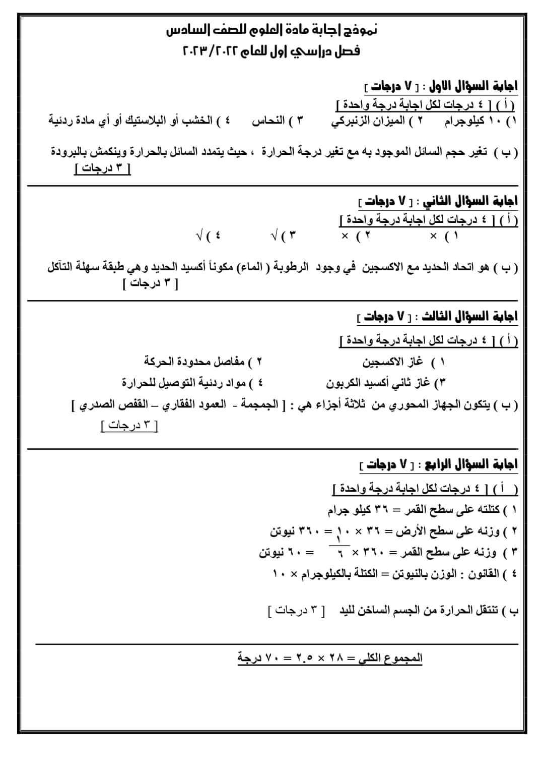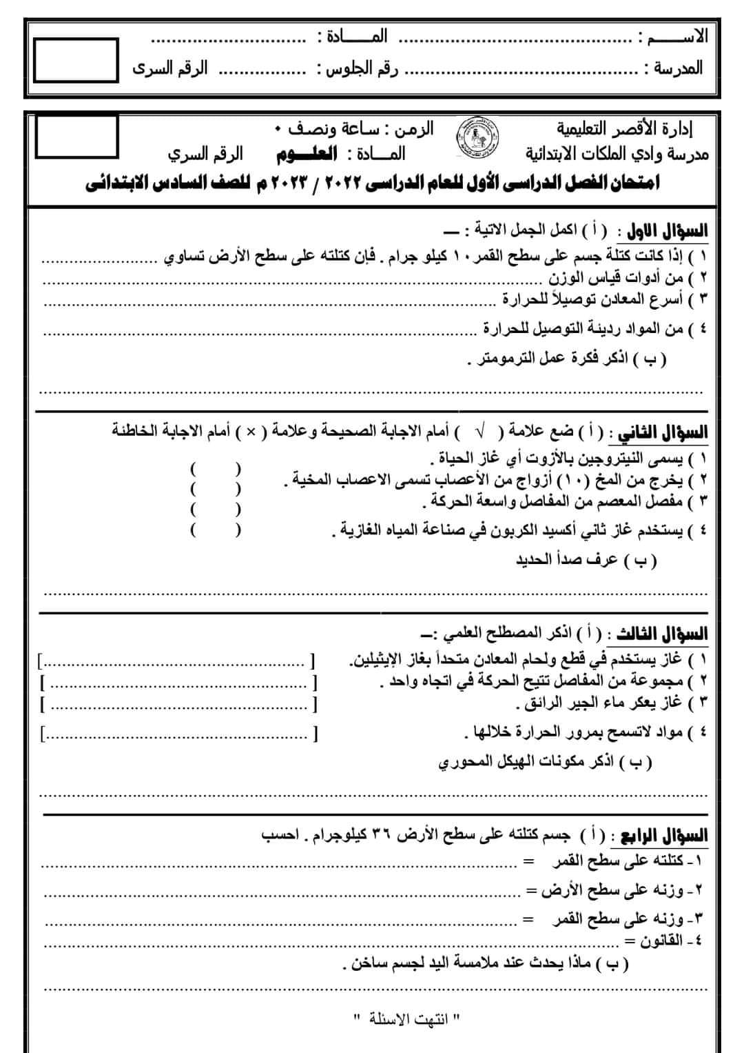 تحميل امتحان توجيه الأقصر علوم الصف السادس الابتدائي الترم الاول 2023 بالاجابات