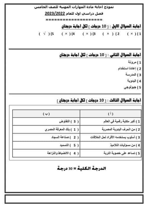 تحميل امتحان توجيه الأقصر مهارات مهنية الصف الخامس الابتدائي الترم الاول 2023 بالاجابات