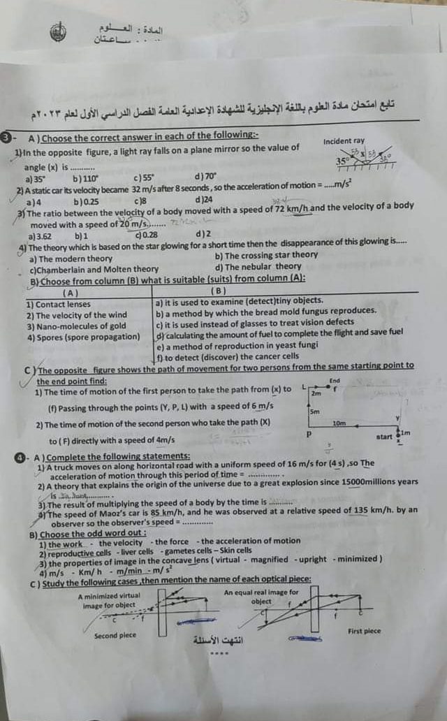 تحميل امتحان ساينس محافظة القليوبية تالتة اعدادي الترم الاول 2023