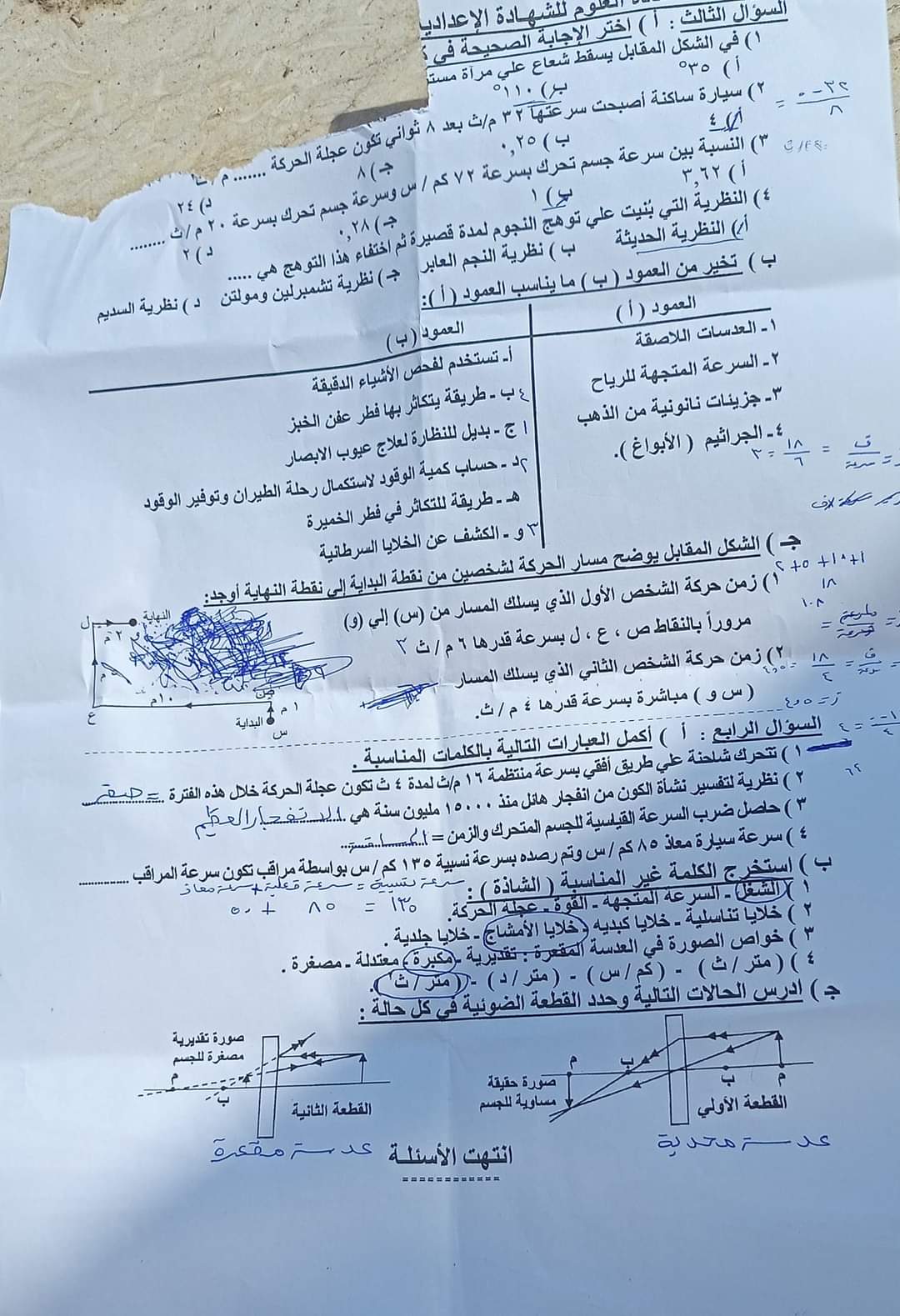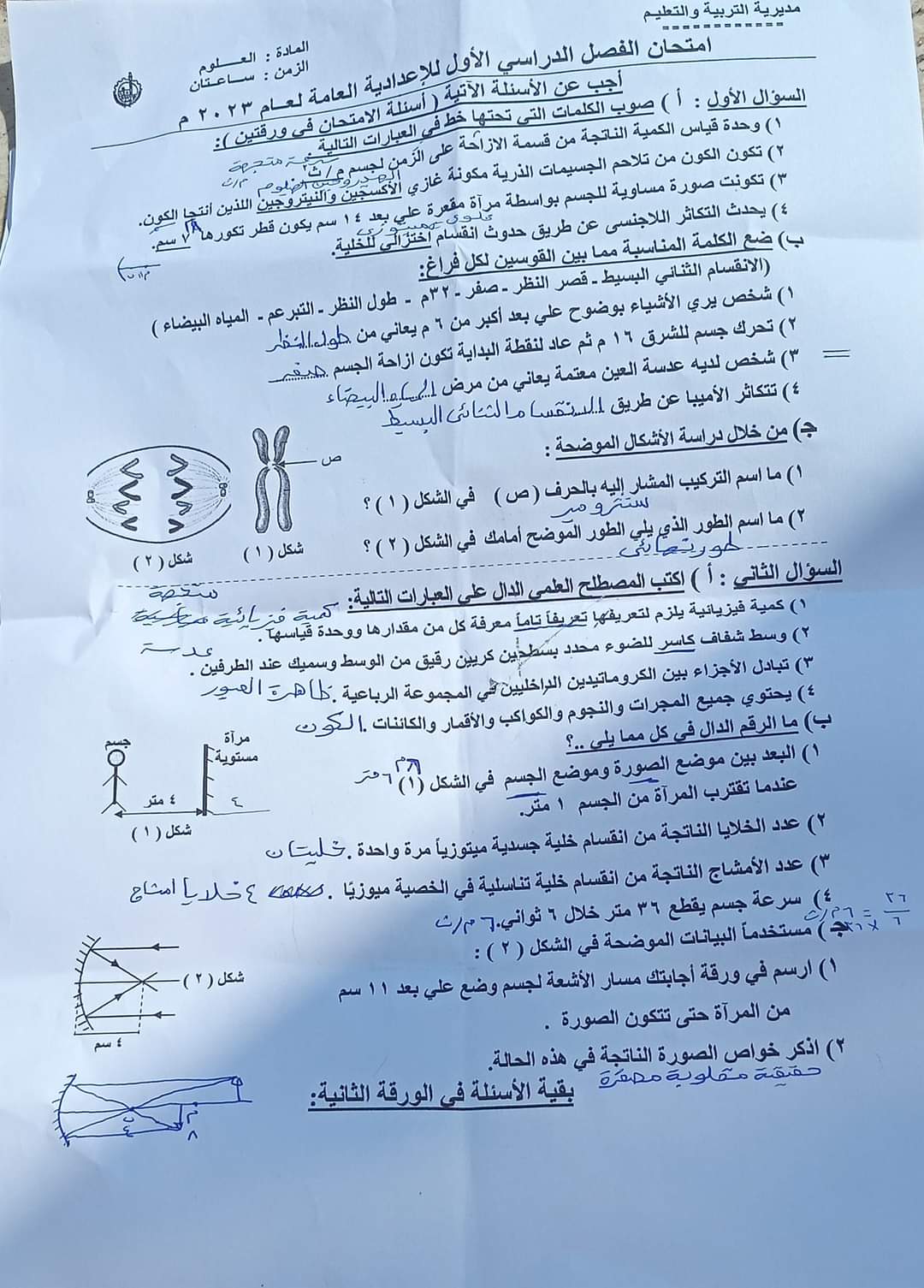 تحميل امتحان علوم محافظة القليوبية الصف الثالث الاعدادي الترم الاول 2023