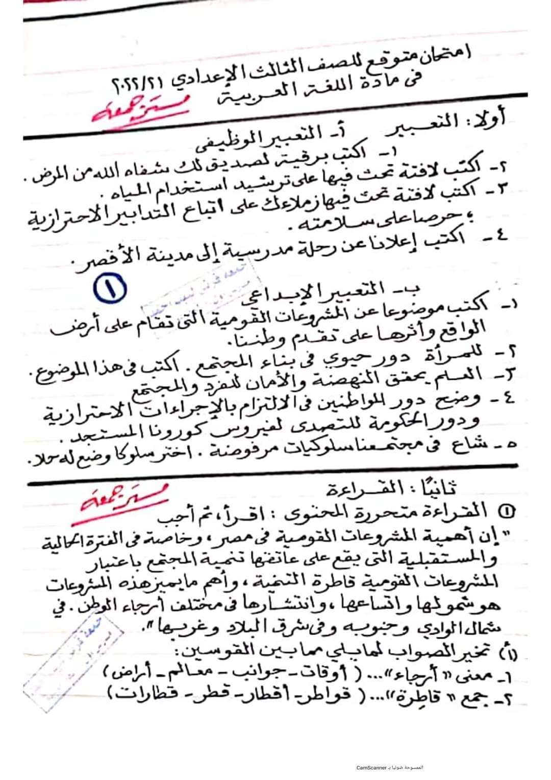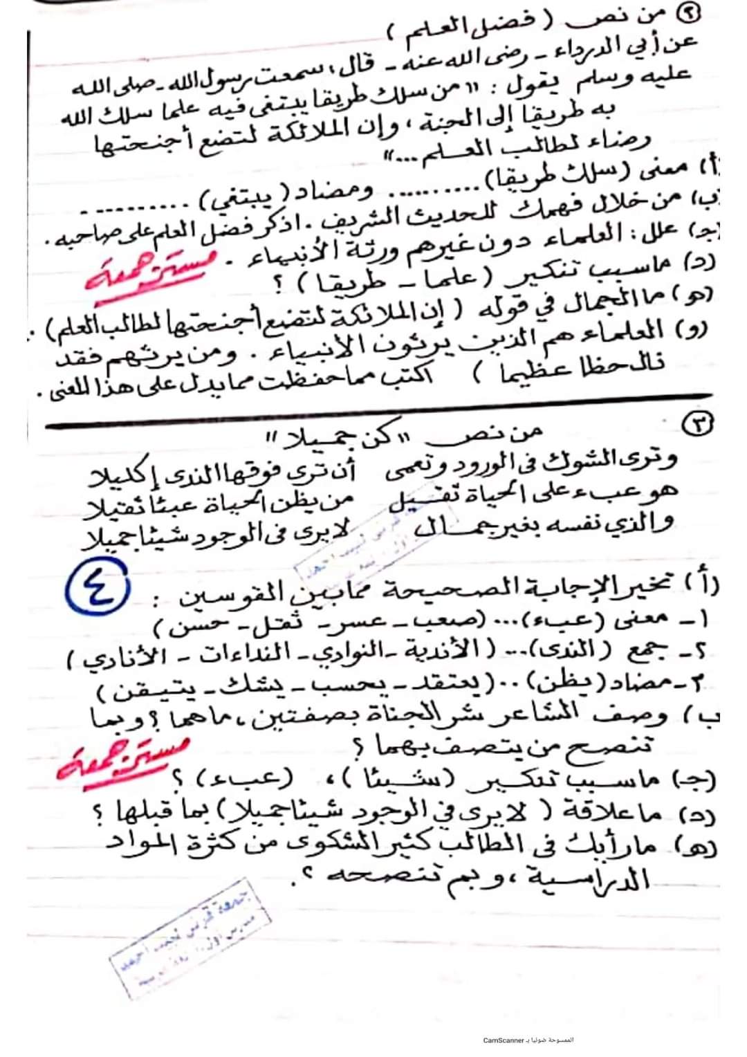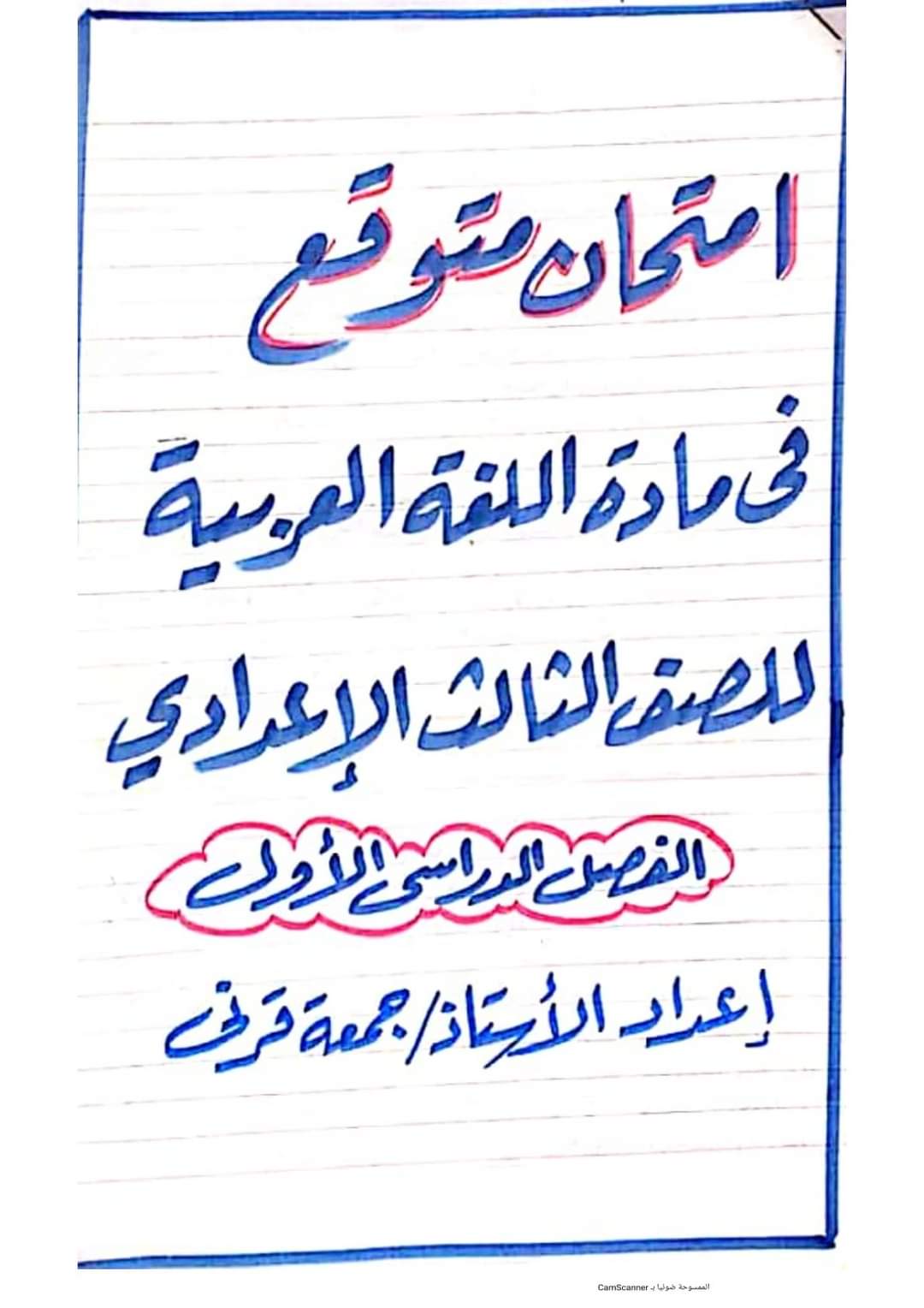 تحميل امتحان لغة عربية متوقع الصف الثالث الاعدادي الترم الاول 2023 بالاجابات