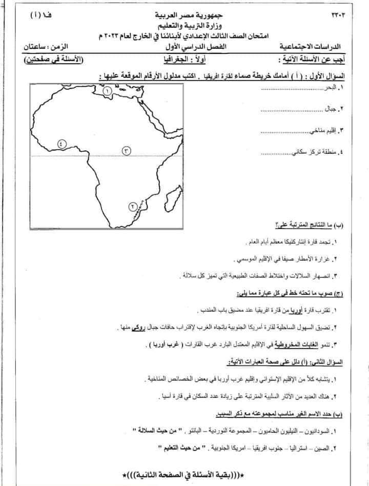 تحميل امتحان الدراسات الاجتماعية أبنائنا فى الخارج الصف الثالث الاعدادي الترم الاول 2023