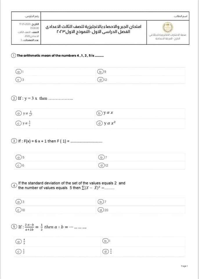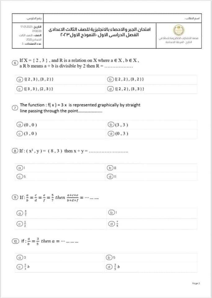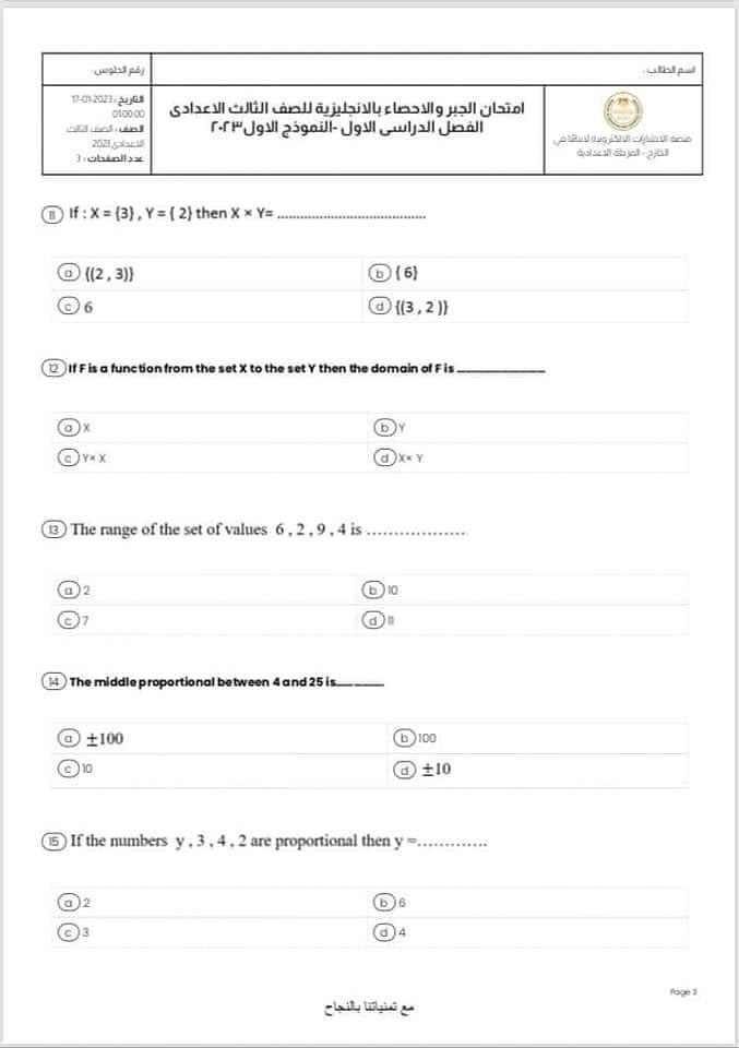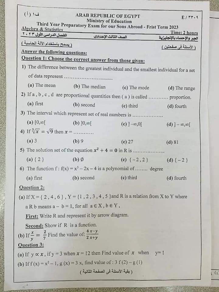 تجميع امتحانات الرياضيات والماث أبنائنا فى الخارج الصف الثالث الاعدادي الترم الاول 2023
