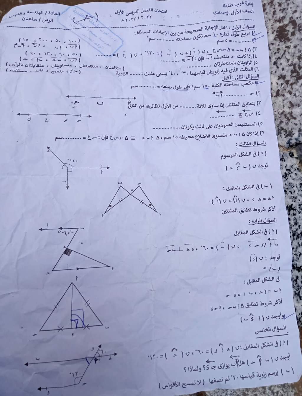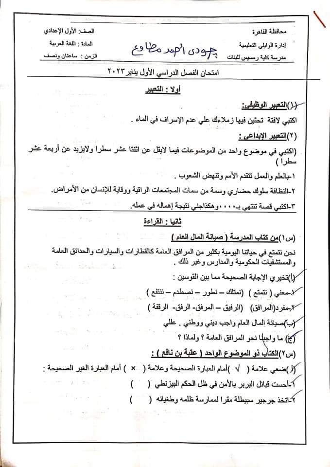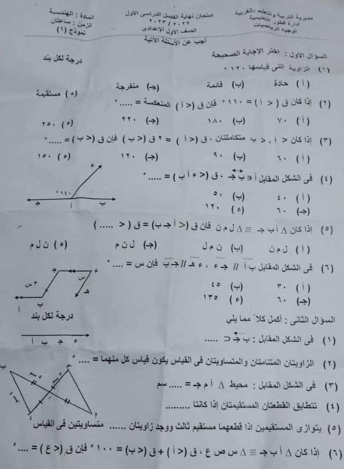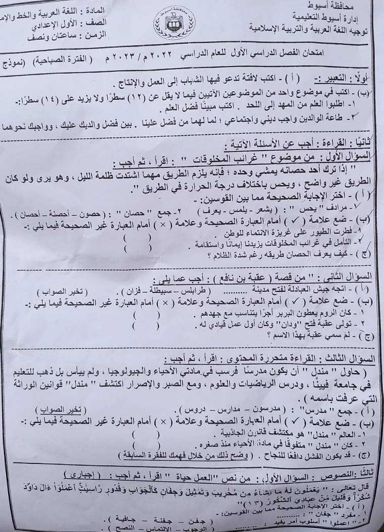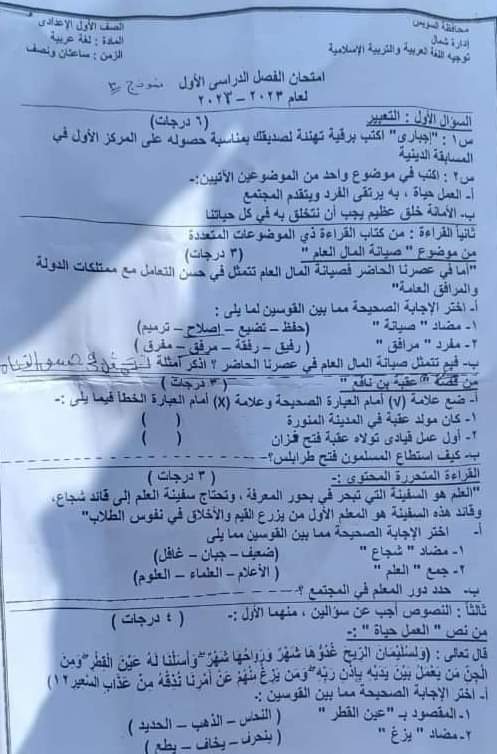 تحميل تجميع امتحانات الصف الاول الاعدادي الفعلية ترم أول 2023 كل المحافظات