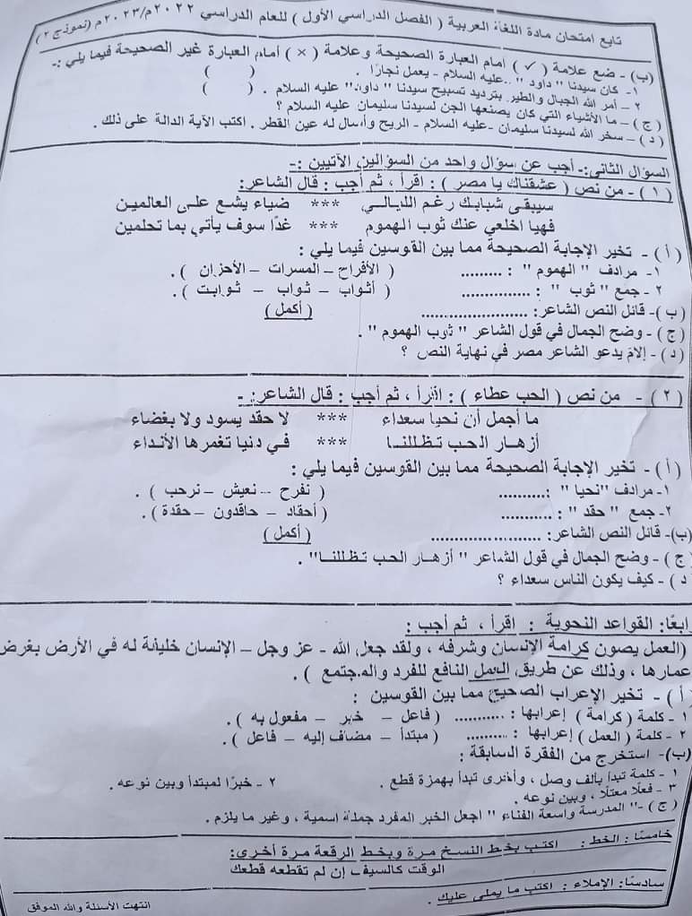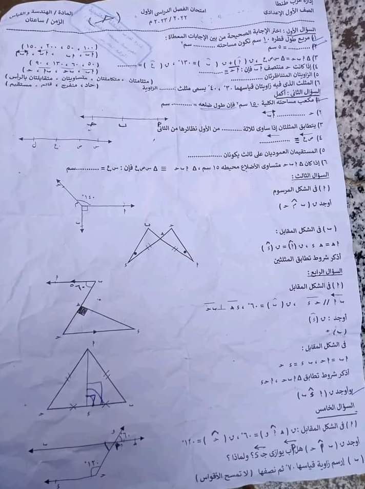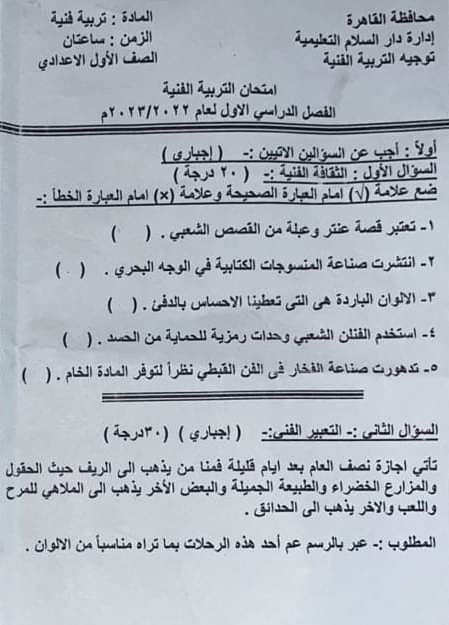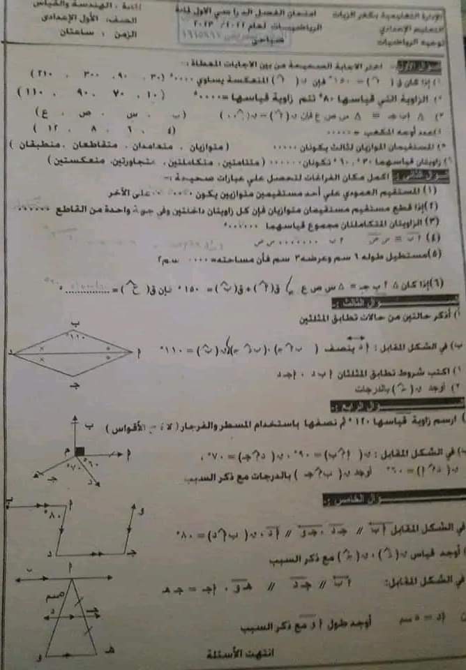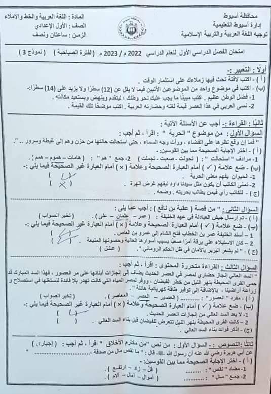 تحميل تجميع امتحانات الصف الاول الاعدادي الفعلية ترم أول 2023 كل المحافظات