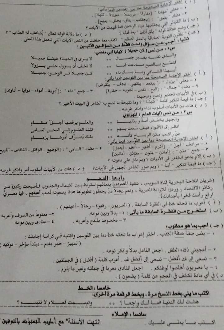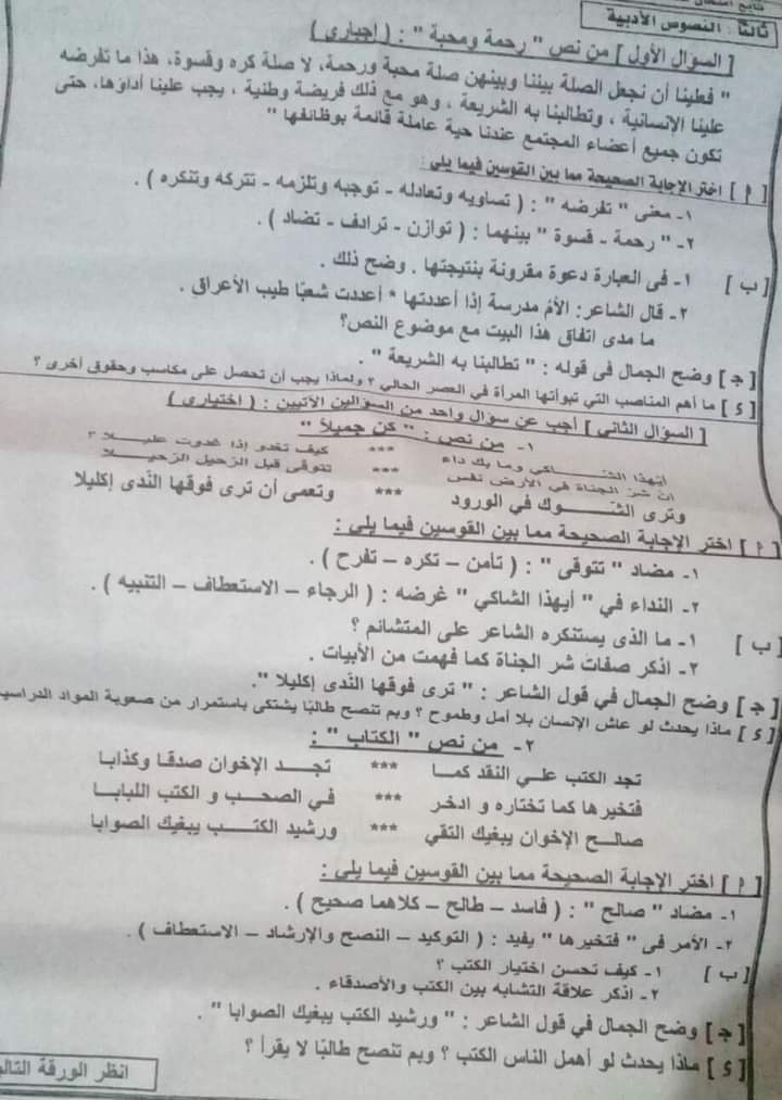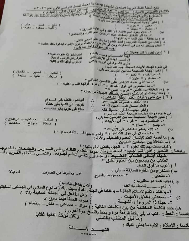 تحميل تجميع امتحانات المحافظات في مادة اللغة العربية الصف الثالث الاعدادي الترم الاول 2022