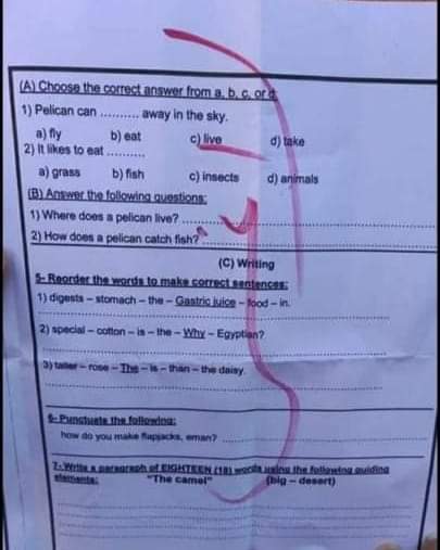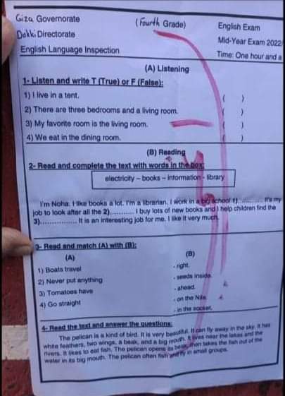امتحان اللغة الانجليزية محافظة الجيزة الصف الرابع والخامس الابتدائي الترم الاول 2023