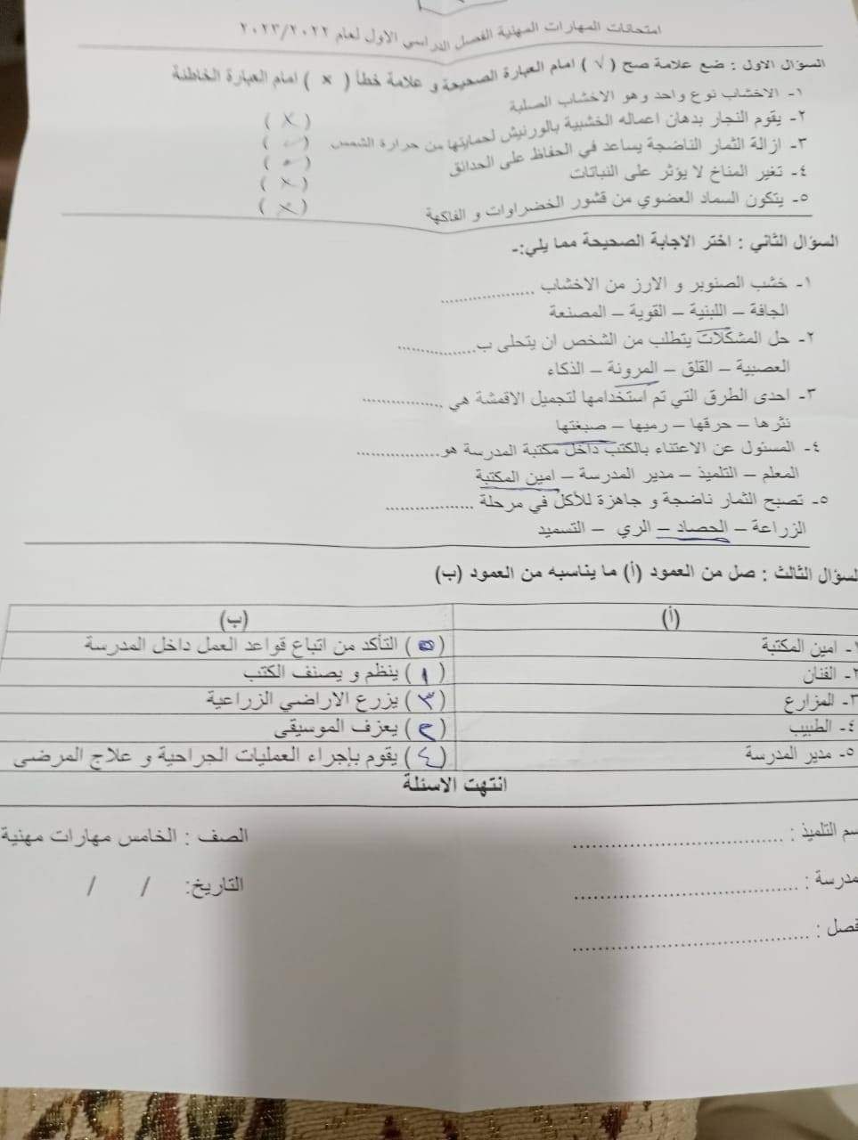 امتحان المهارات المهنية محافظة الجيزة الصف الرابع والخامس الابتدائي الترم الاول 2023