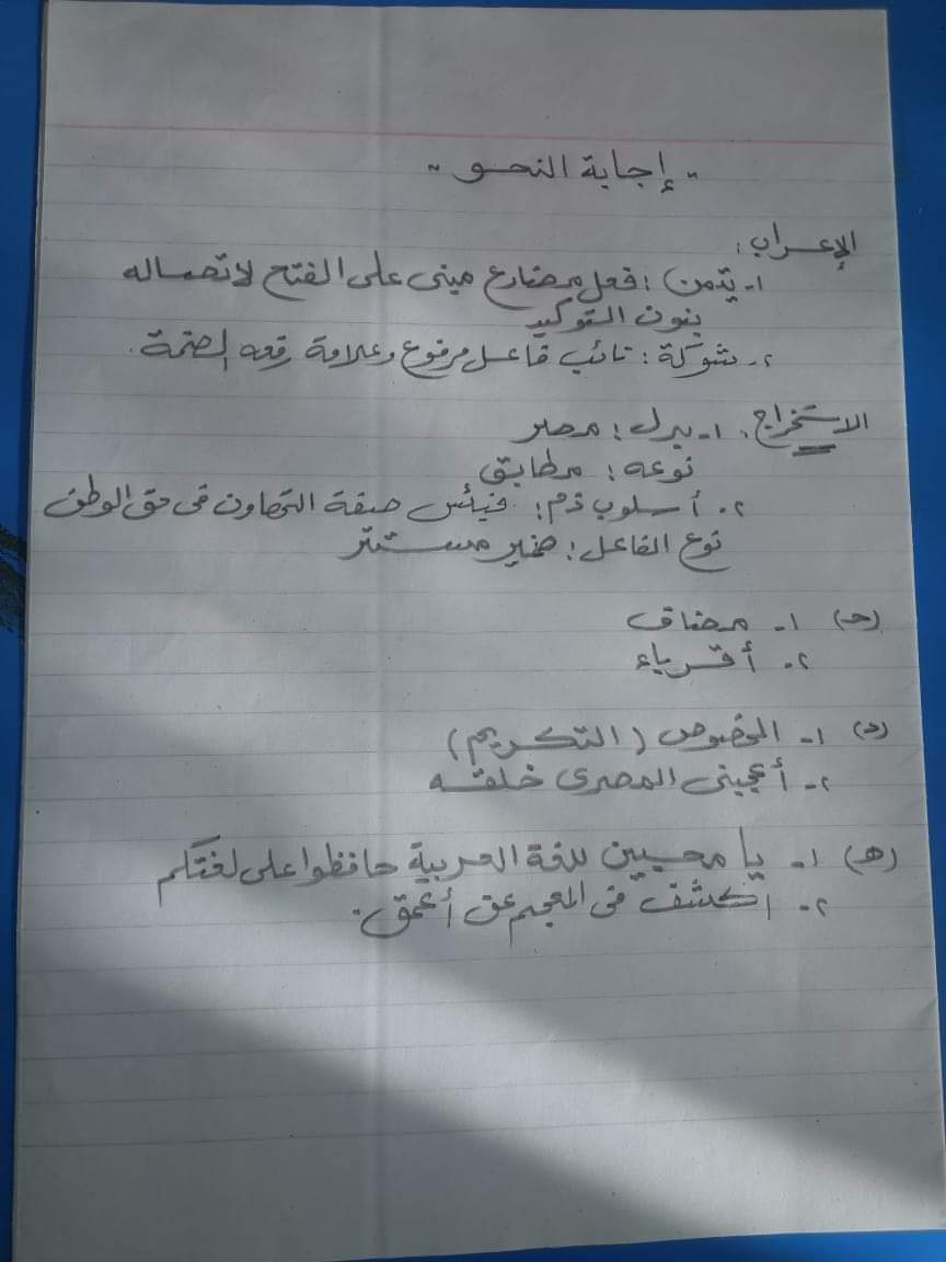اجابة النحو محافظة الشرقية الصف الثالث الاعدادي الترم الاول 2023