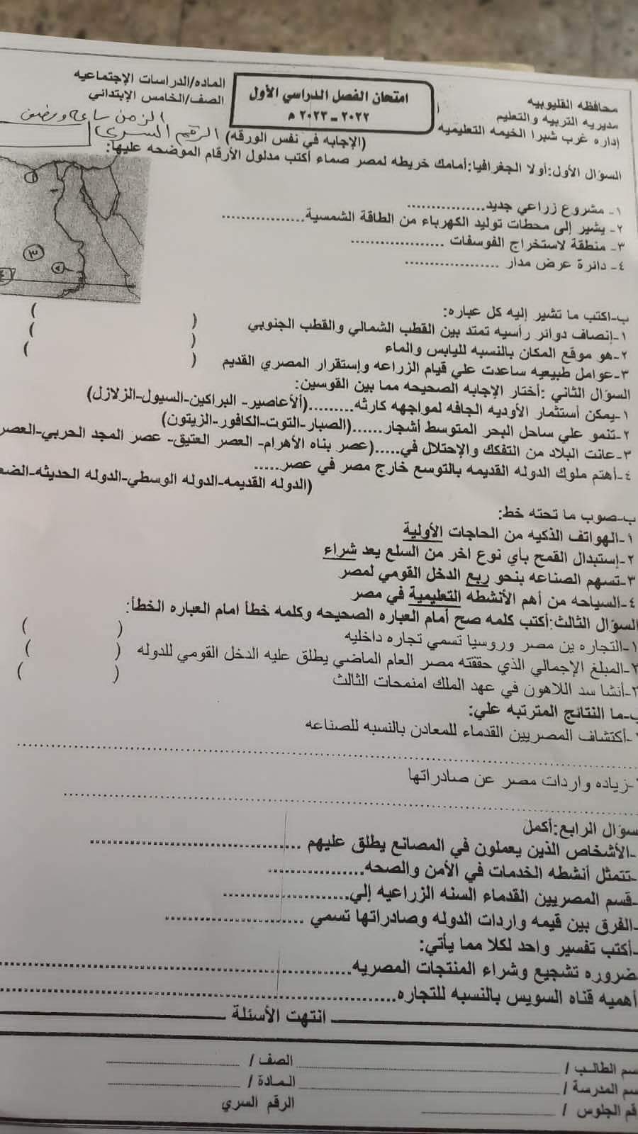 تجميع امتحانات الدراسات الاجتماعية محافظة القليوبية للصفين الرابع والخامس الابتدائي الترم الاول 2023