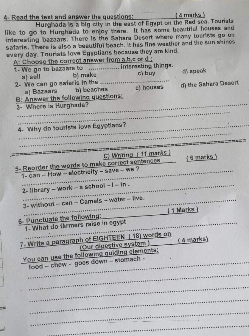 تجميع امتحانات اللغة الانجليزية محافظة القليوبية للصفين الرابع والخامس الابتدائي الترم الاول 2023