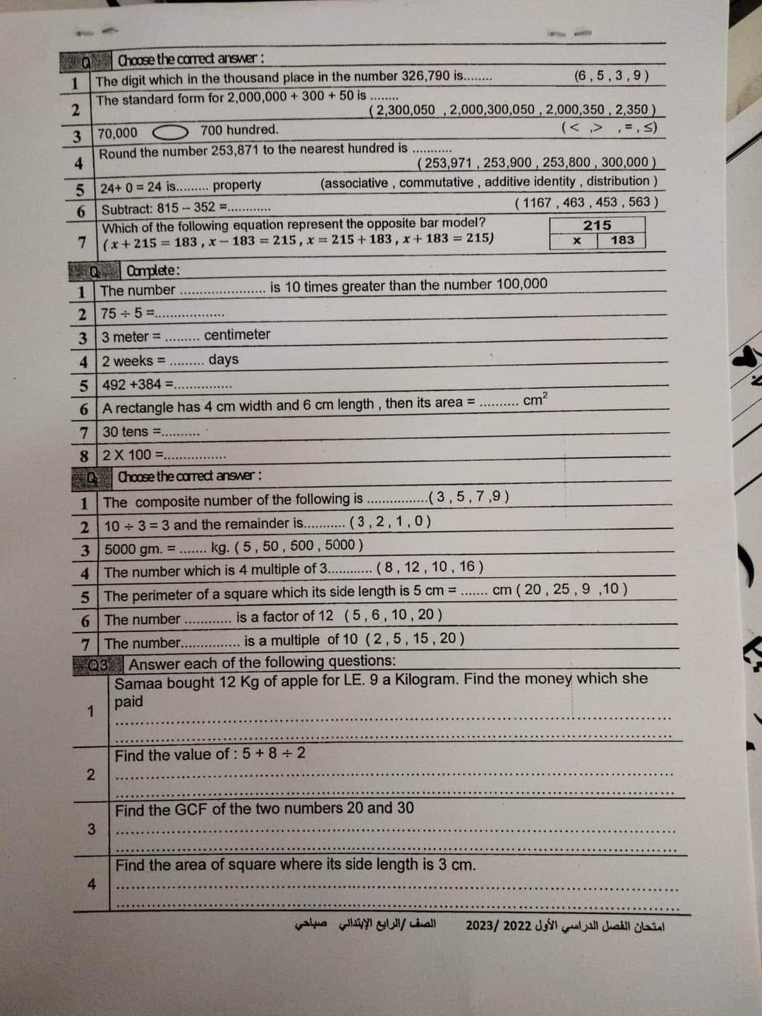 تجميع امتحانات محافظة القليوبية الصفين الرابع والخامس الابتدائي الترم الاول 2023