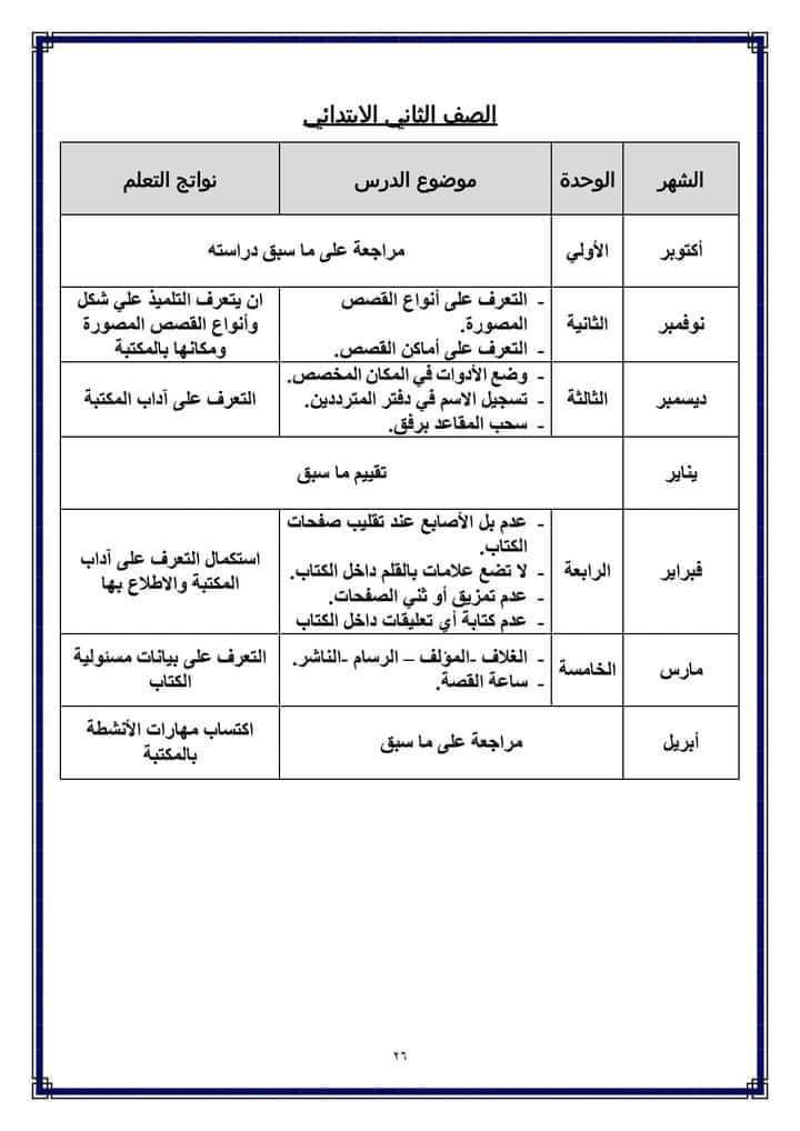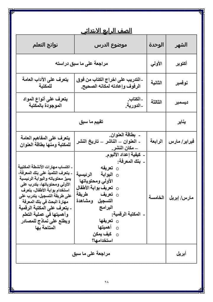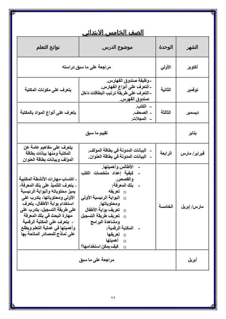 تحميل توزيع منهج التربية المكتبية للمرحلة الابتدائية الترم الثاني 2023