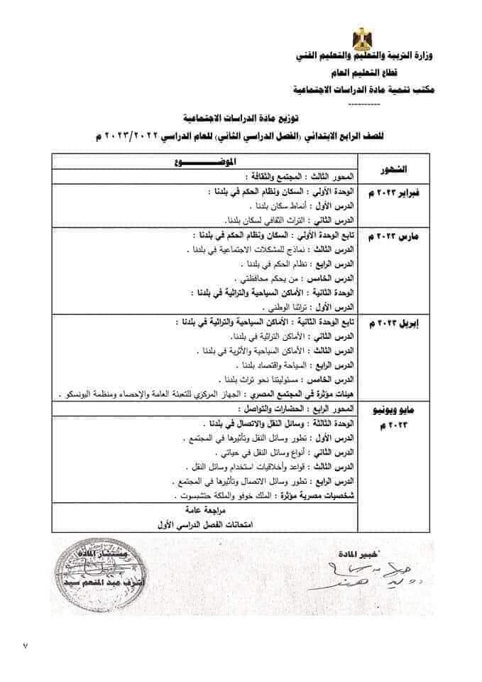 تحميل توزيع منهج الدراسات رابعة ابتدائي الترم الثاني 2023