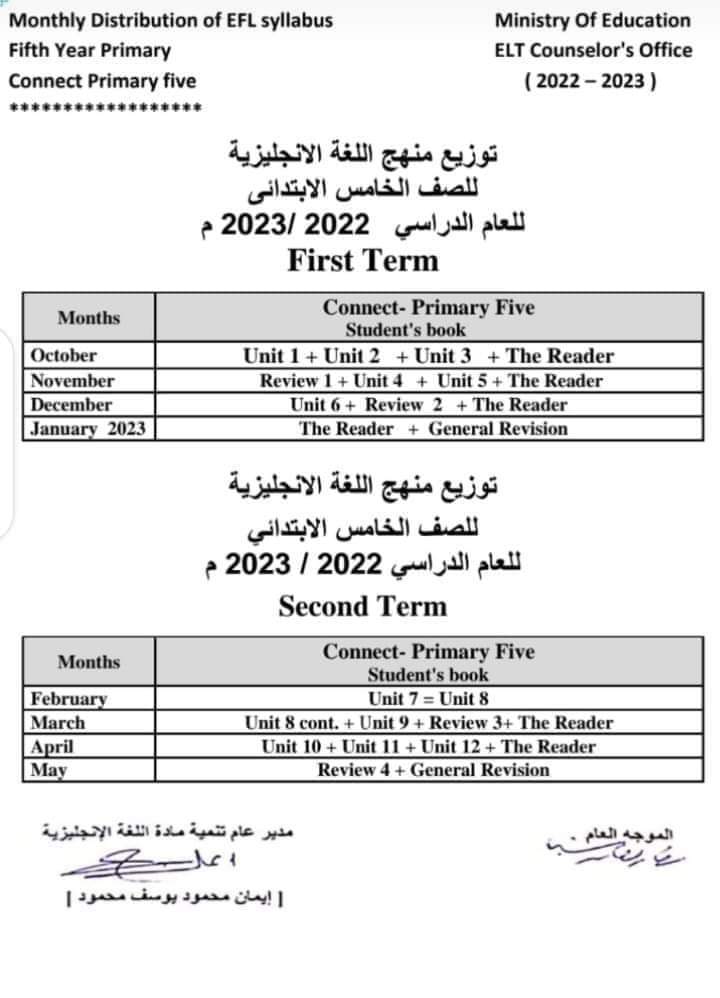 تحميل توزيع منهج اللغة الانجليزية الصف الخامس الابتدائي الترم الثاني 2023