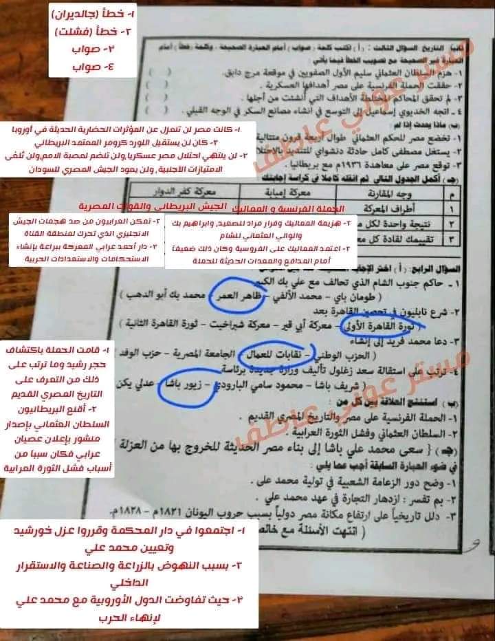 واسئلة صح وغلط مأخوذه من امتحانات كفر الشيخ السابقة تحياتى للجميع بالتوفيق