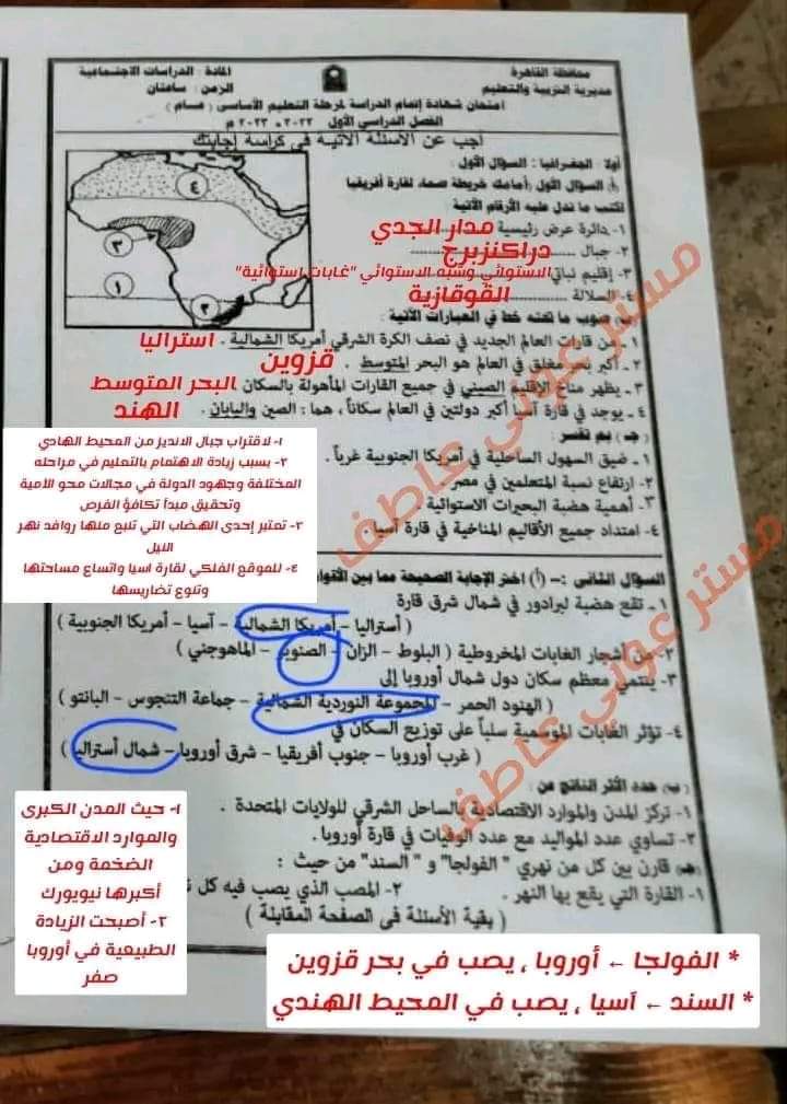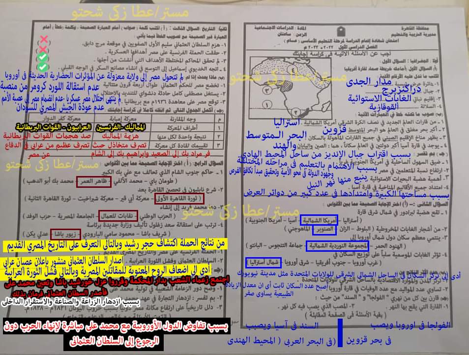 تحميل حل امتحان الدراسات الاجتماعية محافظة القاهرة الصف الثالث الاعدادي الترم الاول 2023