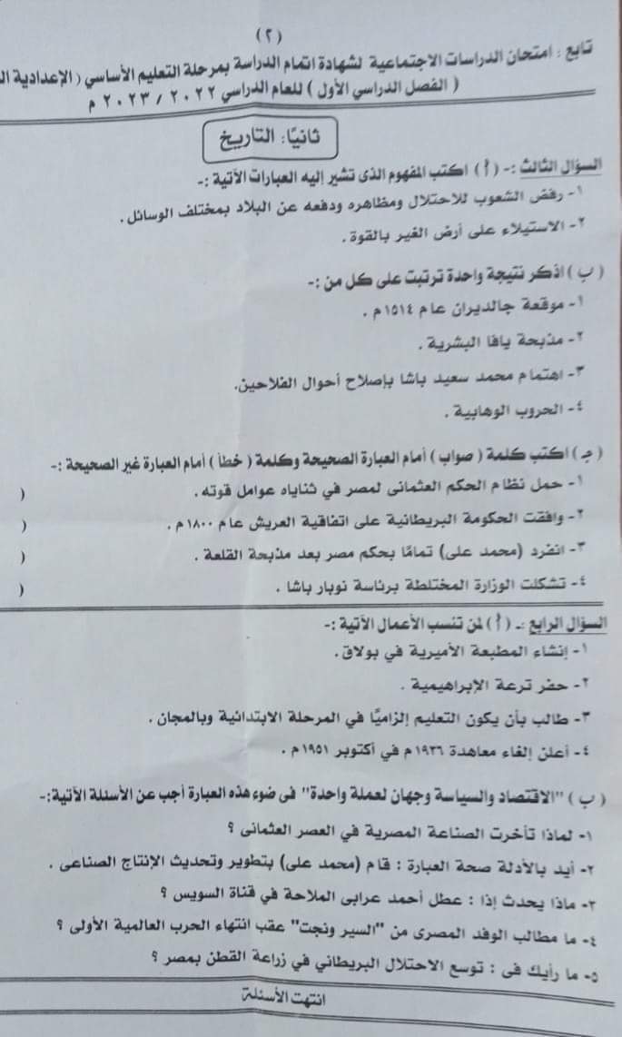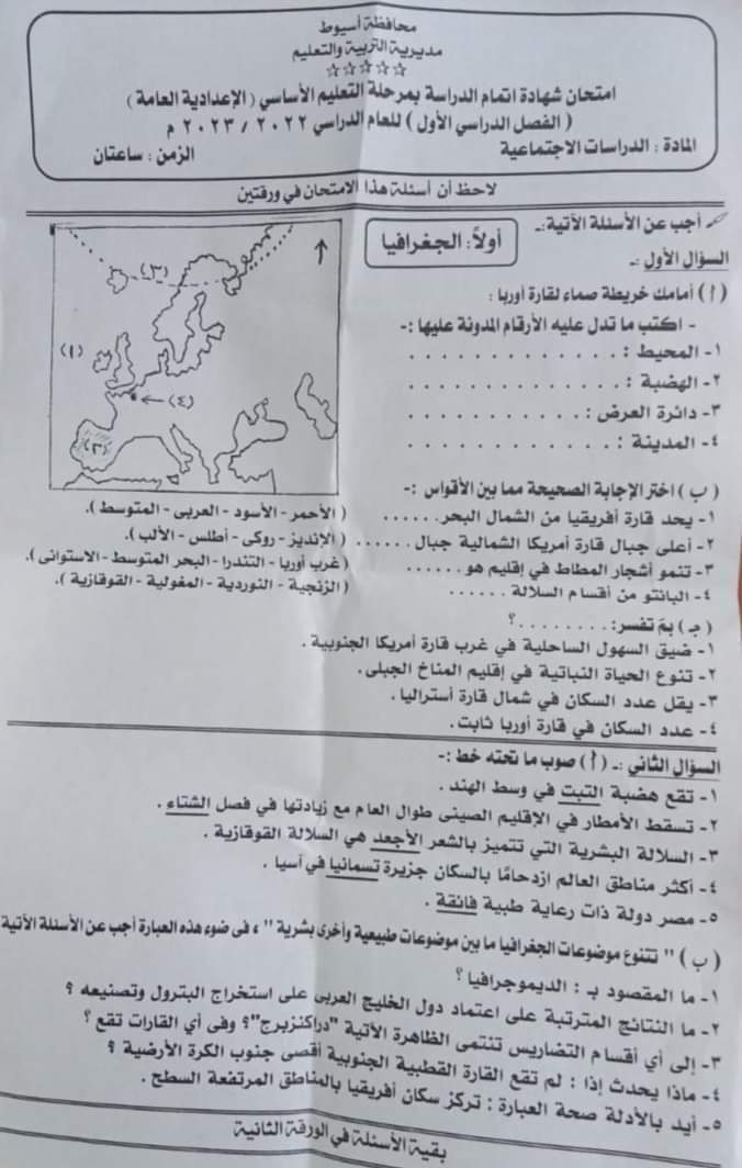 تحميل حل امتحان الدراسات الاجتماعية محافظة اسيوط الصف الثالث الاعدادي الترم الاول 2023