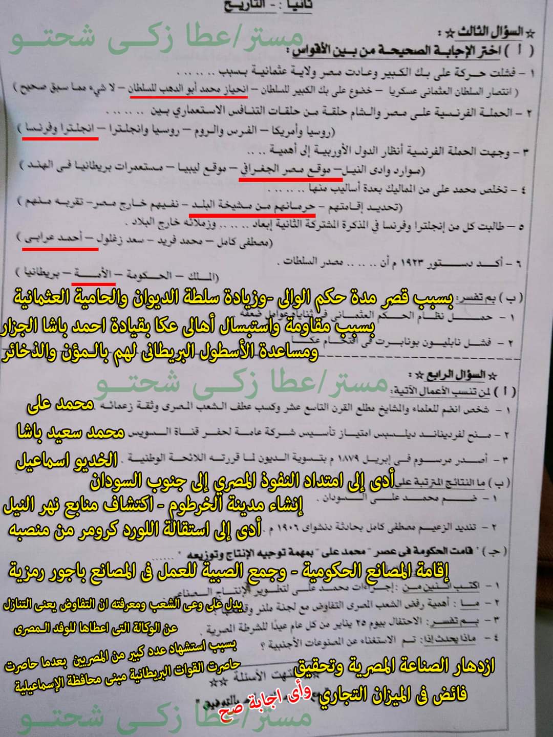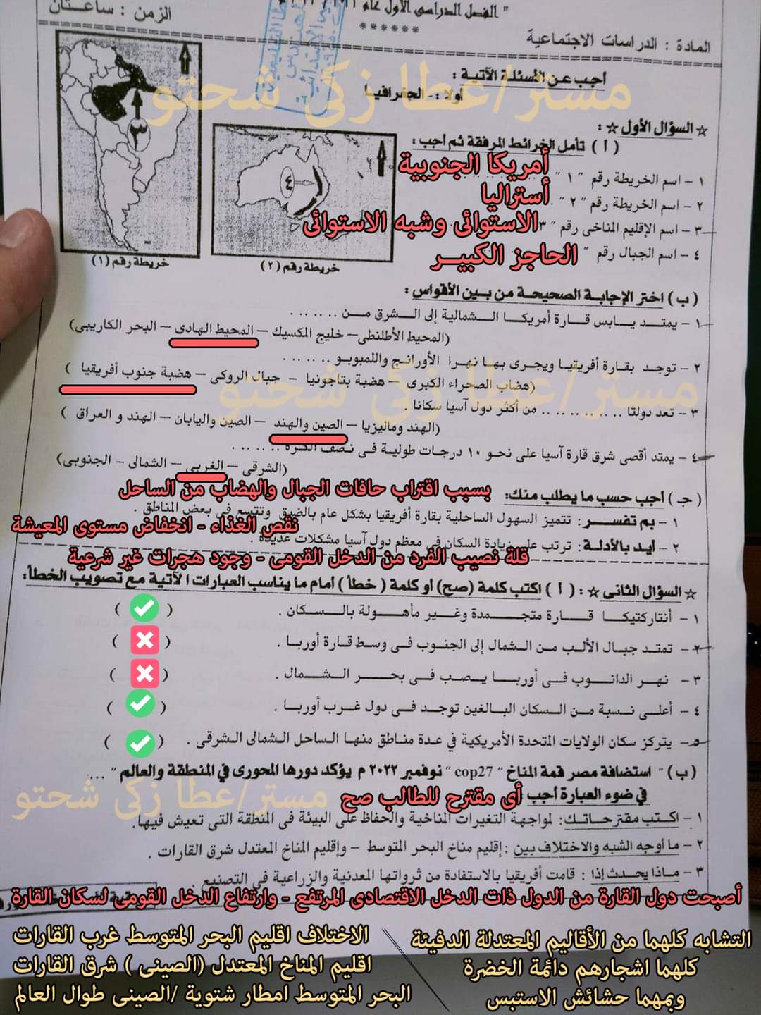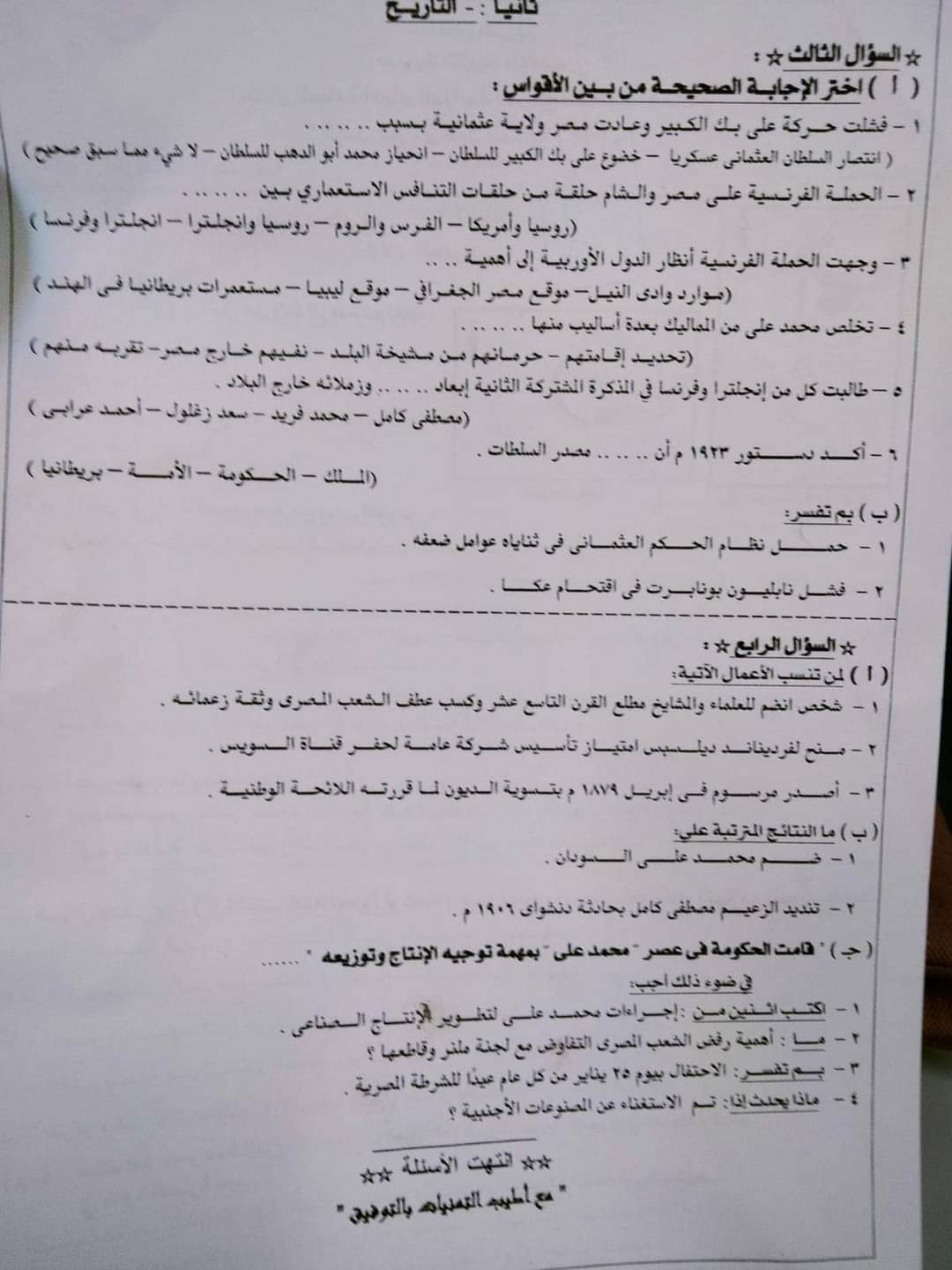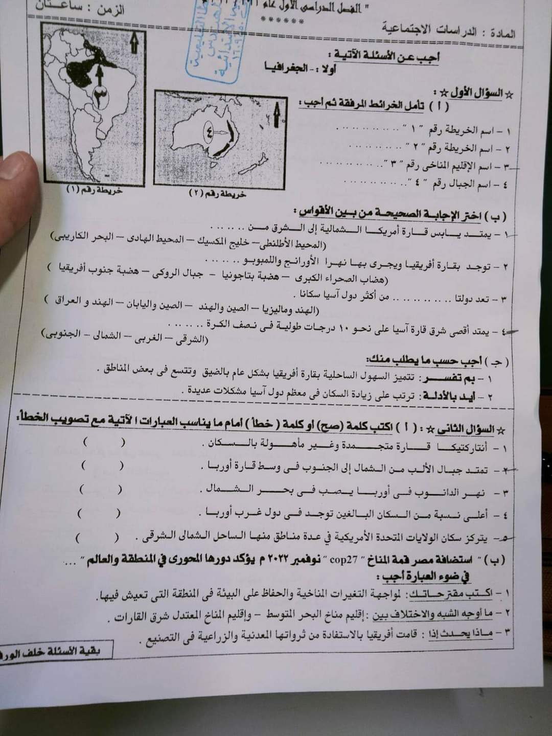 تحميل حل امتحان الدراسات الاجتماعية محافظة الغربية الصف الثالث الاعدادي الترم الاول 2023