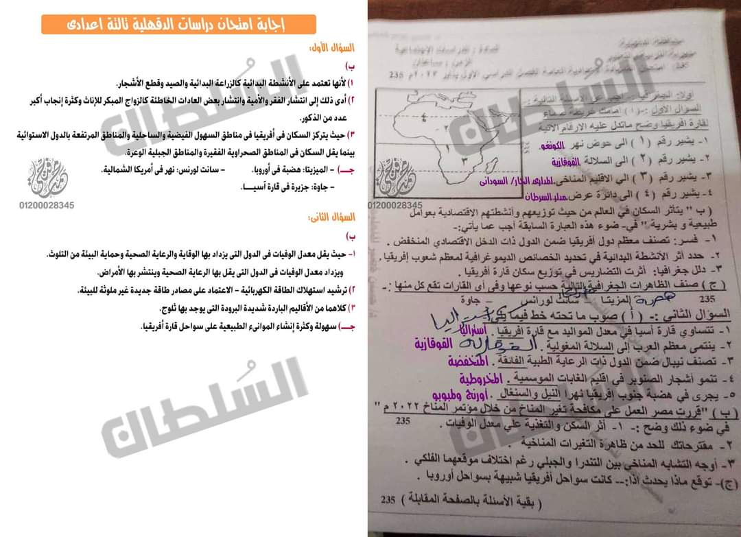تحميل حل امتحان الدراسات الاجتماعية محافظة الدقهلية تالتة اعدادي 2023