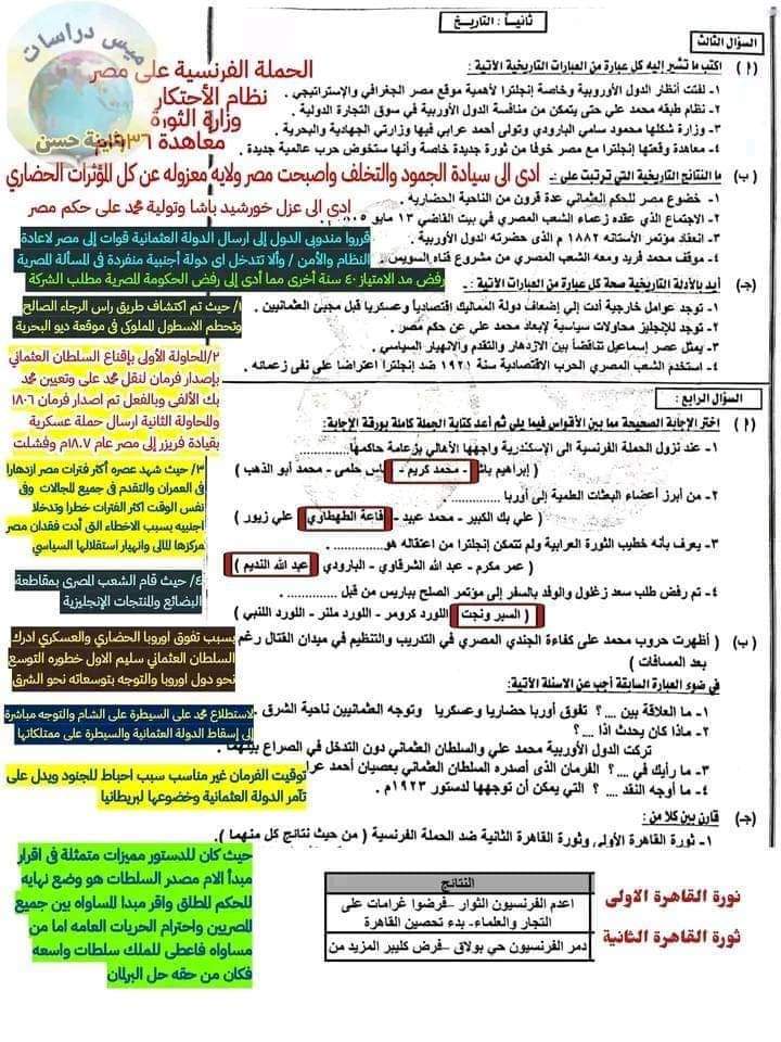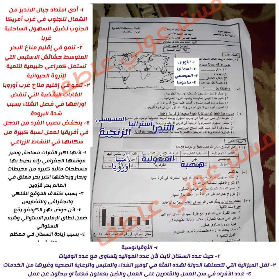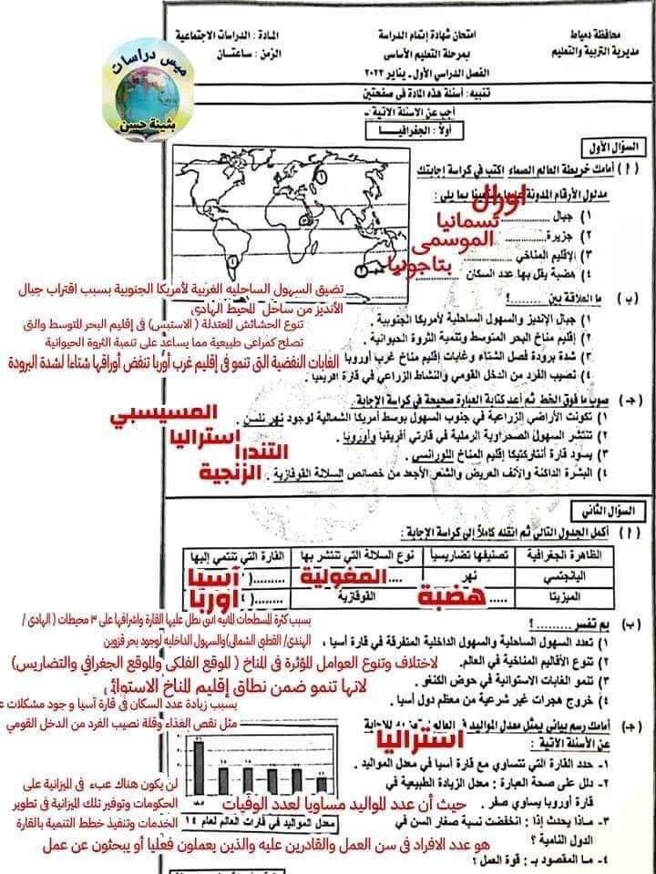 تحميل حل امتحان الدراسات الاجتماعية محافظة دمياط الصف الثالث الاعدادي الترم الاول 2023