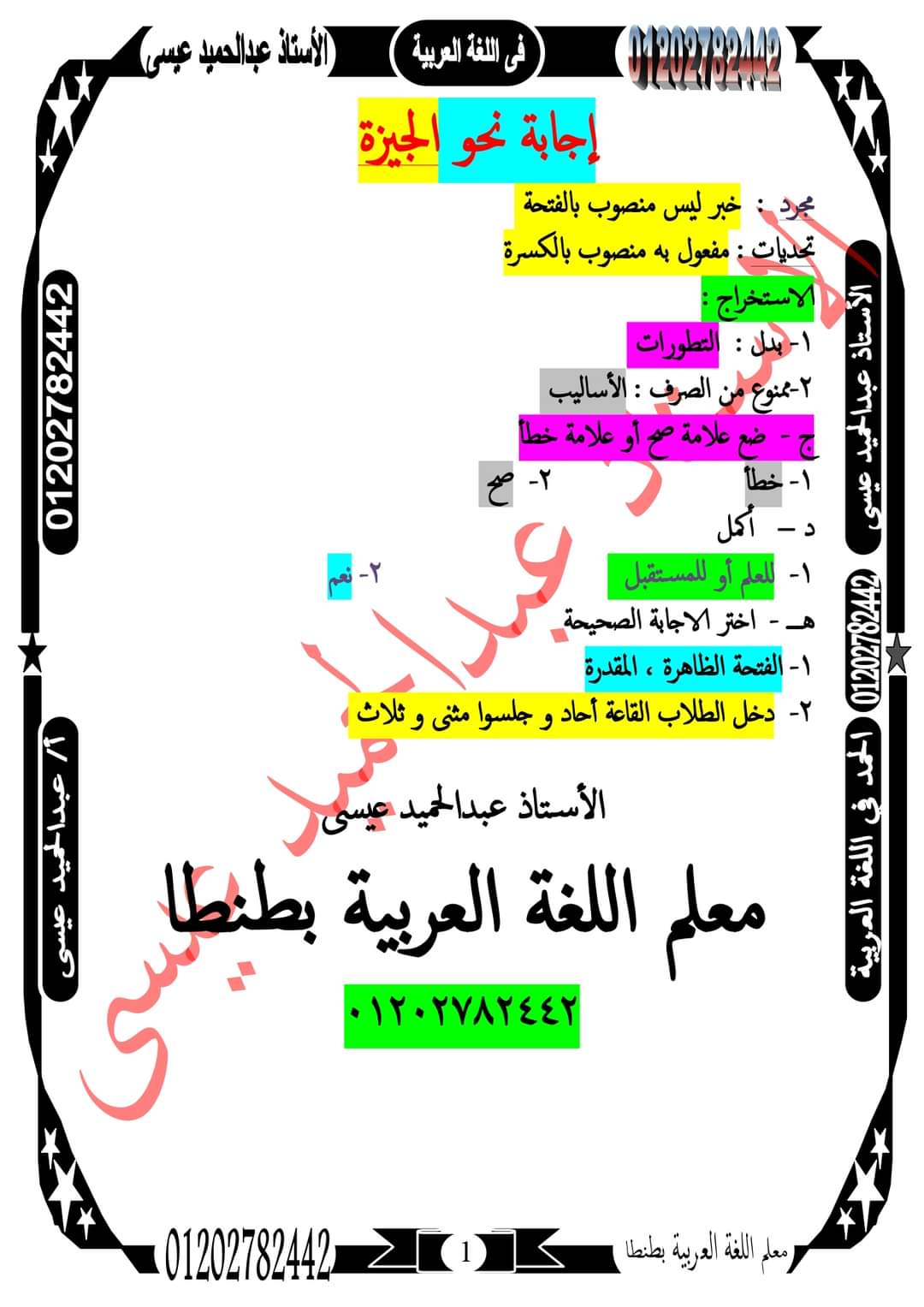 تحميل حل امتحان العربي محافظة الجيزة الصف الثالث الاعدادي الترم الاول 2023