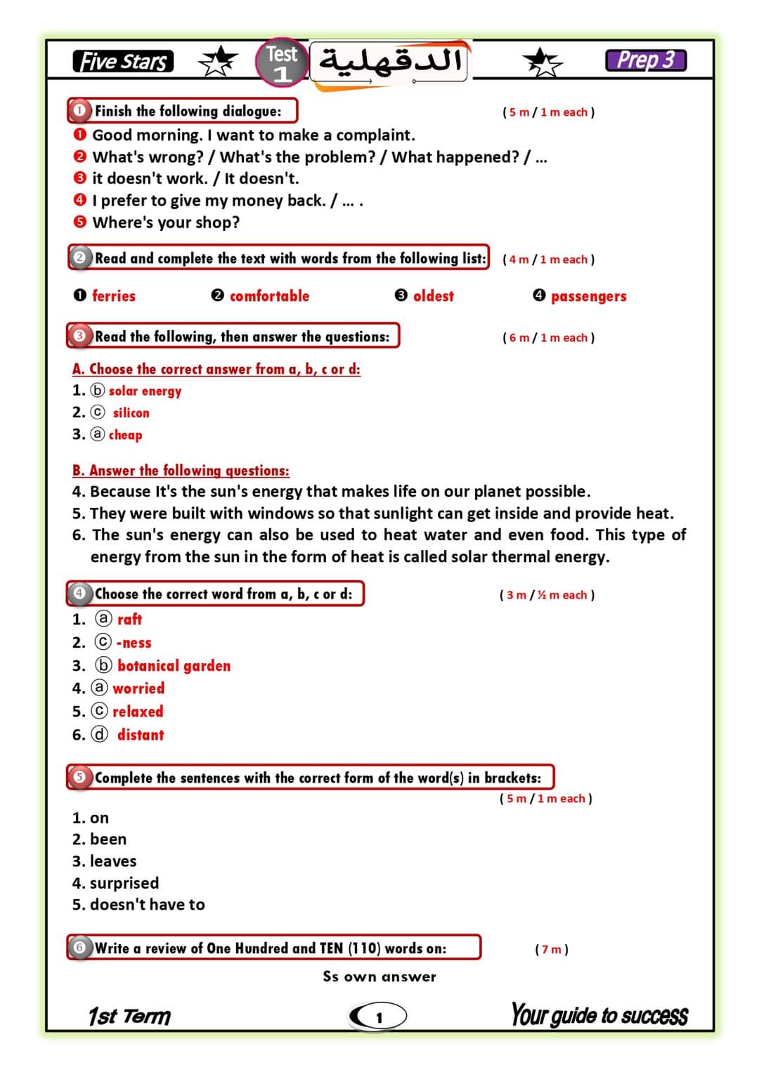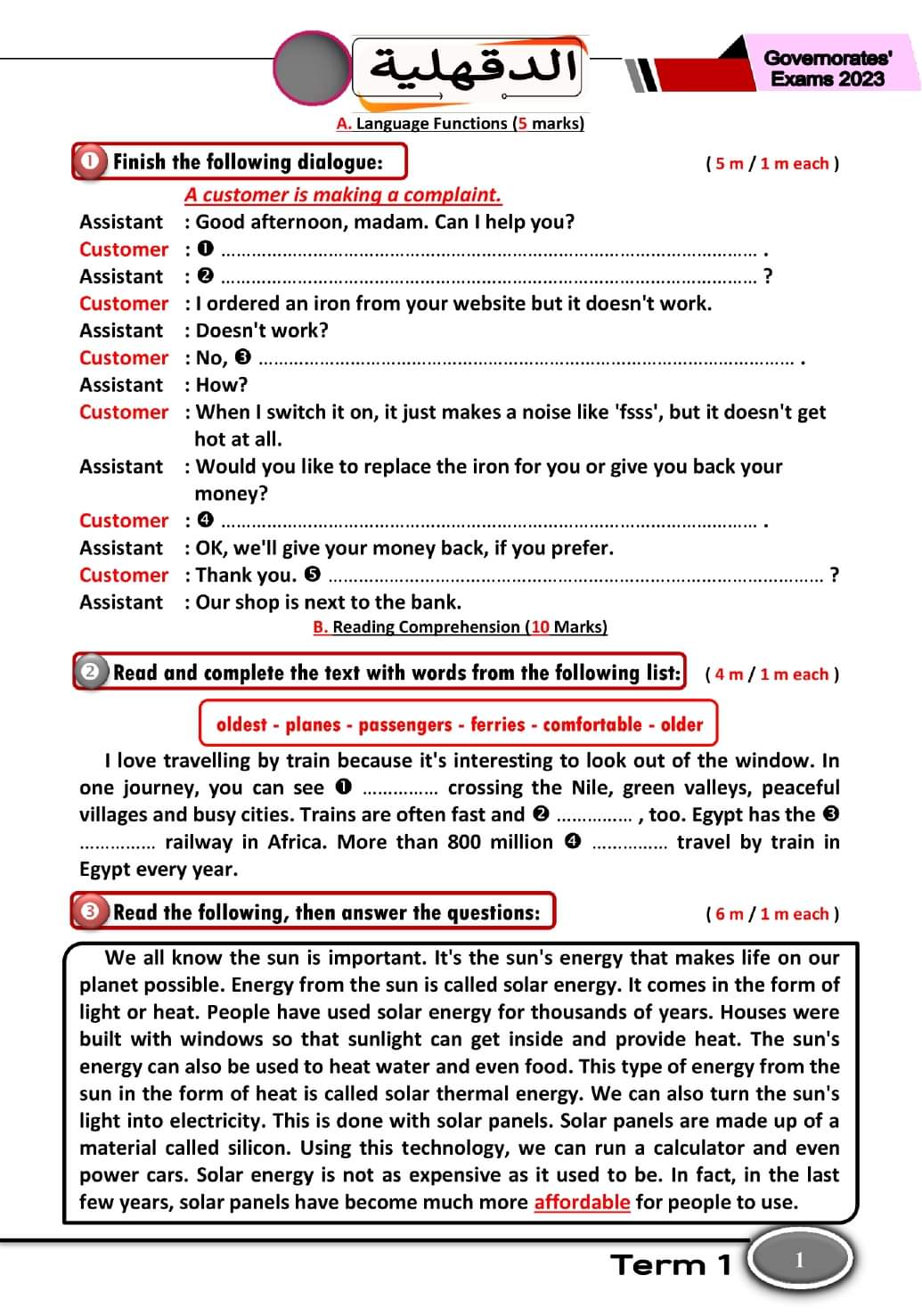 تحميل حل امتحان اللغة الانجليزية محافظة الدقهلية الصف الثالث الاعدادي الترم الاول 2023