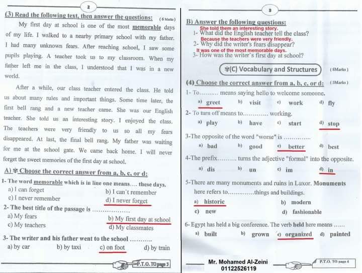 تحميل حل امتحان اللغة الانجليزية محافظة المنيا الصف الثالث الاعدادي ترم أول 2023