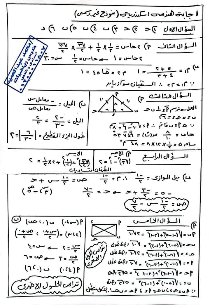 تحميل حل امتحان الهندسة محافظة الاسكندرية الصف الثالث الاعدادي الترم الاول 2023