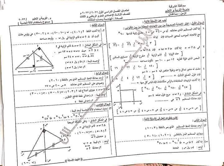 تحميل حل امتحان الهندسة محافظة الشرقية الصف الثالث الاعدادي الترم الاول 2023