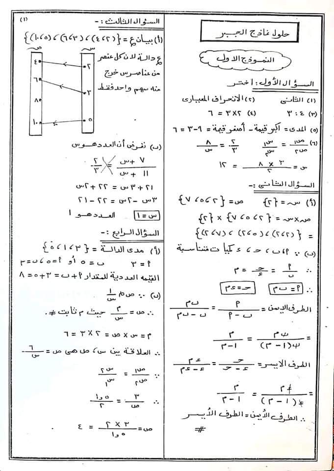 تحميل حل تمارين الكتاب الرياضيات المدرسي جبر وهندسة تالتة اعدادي الترم الاول 2023