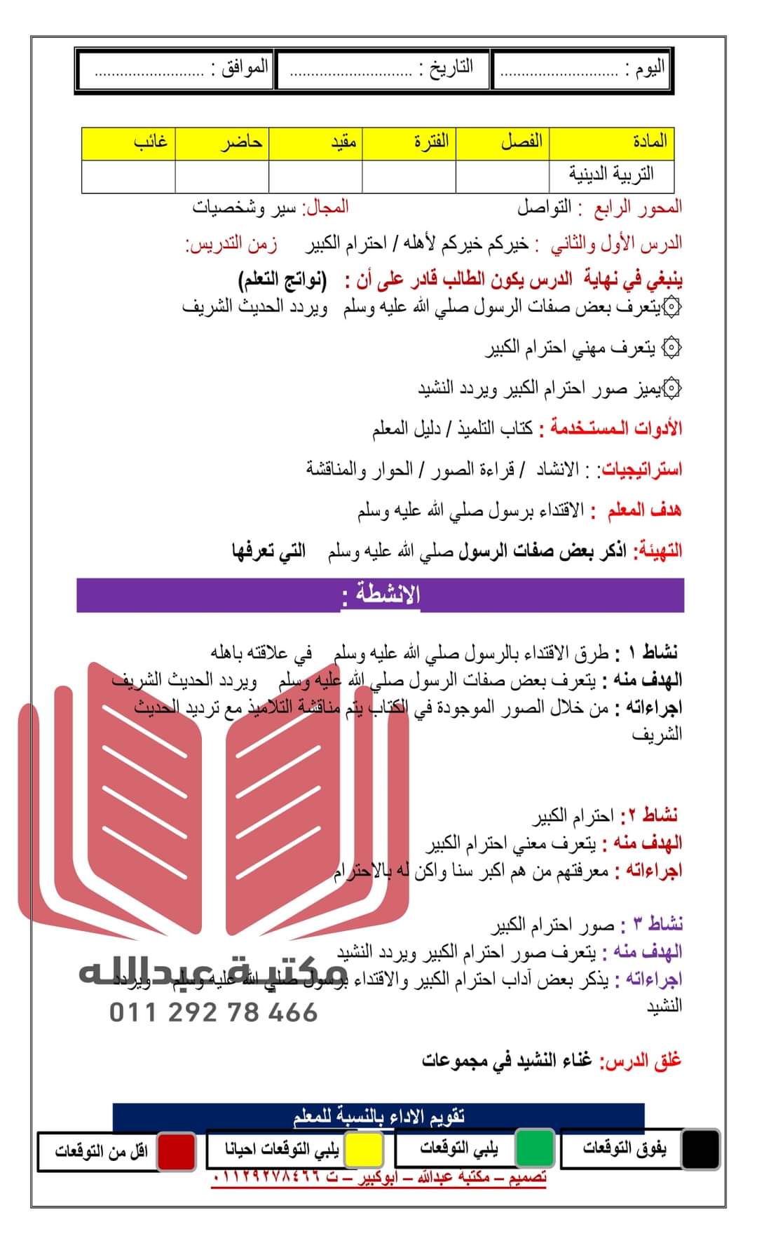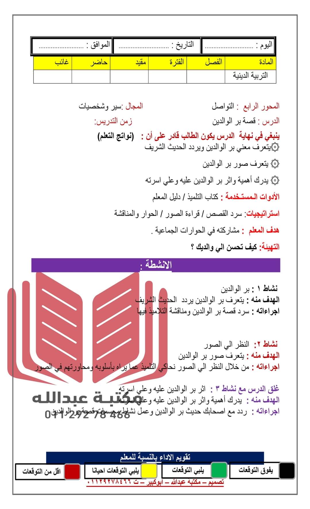 تحميل دفتر تحضير التربية الدينية للصف الاول الابتدائي الترم الثاني 2023 pdf