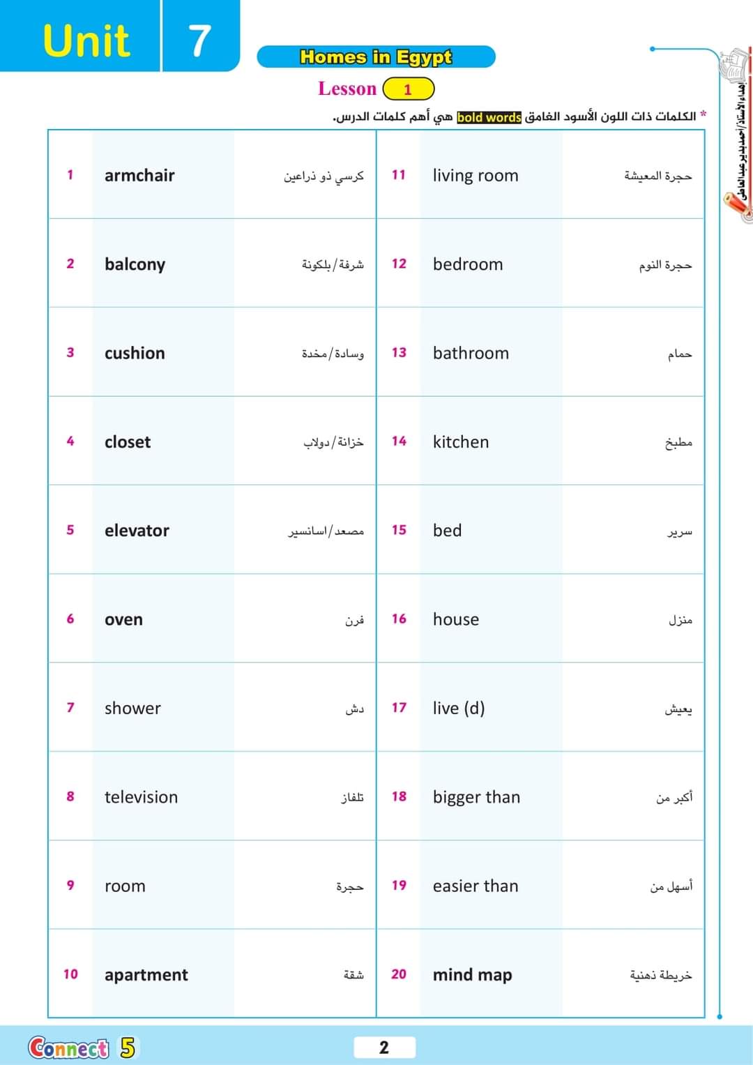 قاموس كلمات كونكت الصف الخامس / ترم ثان ٢٠٢٣