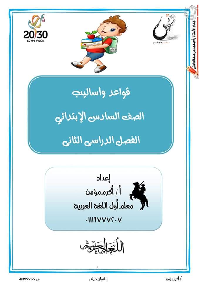 تحميل مذكرة القواعد النحوية الصف السادس الابتدائى الترم الثاني 2023