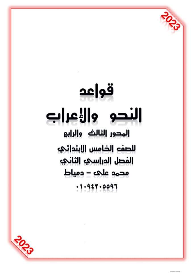 قواعد النحو والإعراب للصف الخامس / ترم ثان ٢٠٢٣
