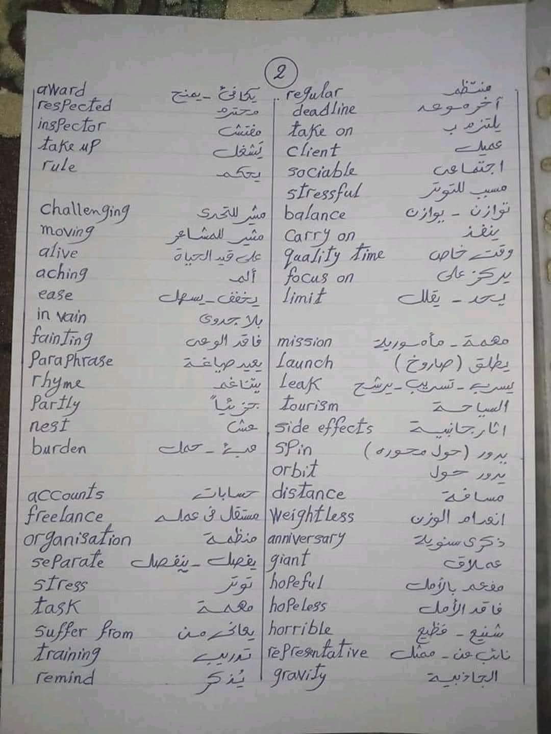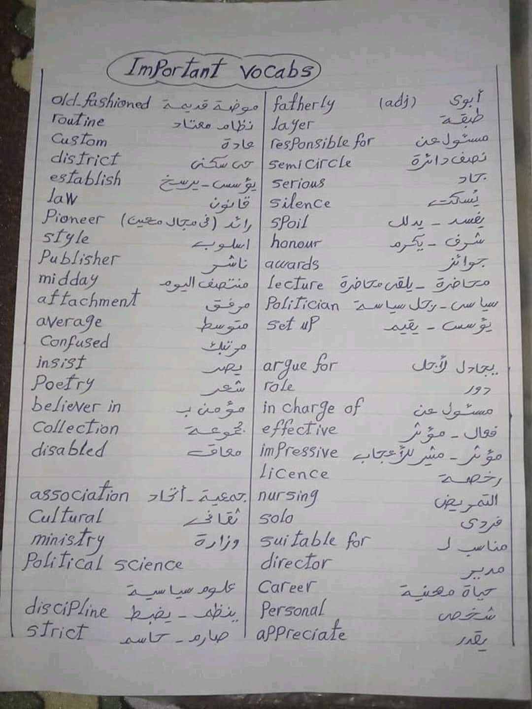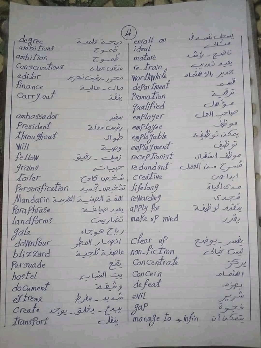 ملخص لأهم الكلمات الأساسية في كل وحدة لازم تبقي حافظهم