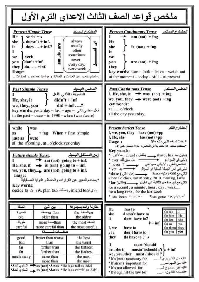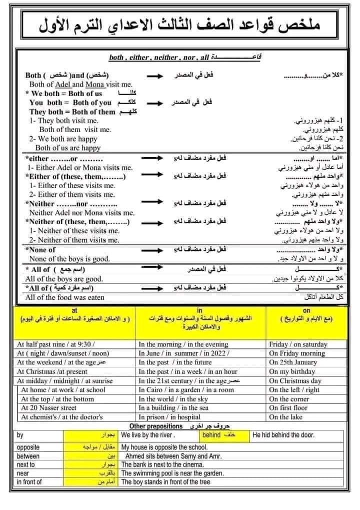تحميل ملخص قواعد برجرافات الشهادة الإعدادية الترم الاول 2023 في ثلاث ورقات