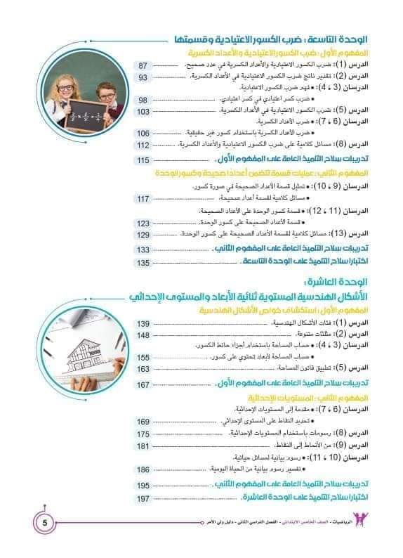 منهج الرياضيات الصف الخامس الإبتدائي الفصل الدراسي الثاني استعدوا يا أبطال 6 وحدات