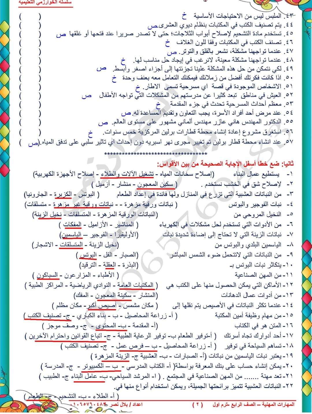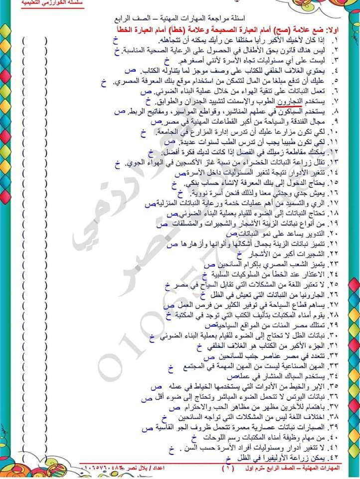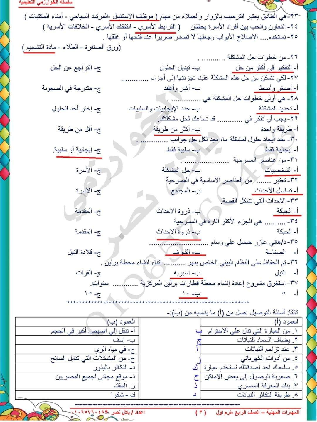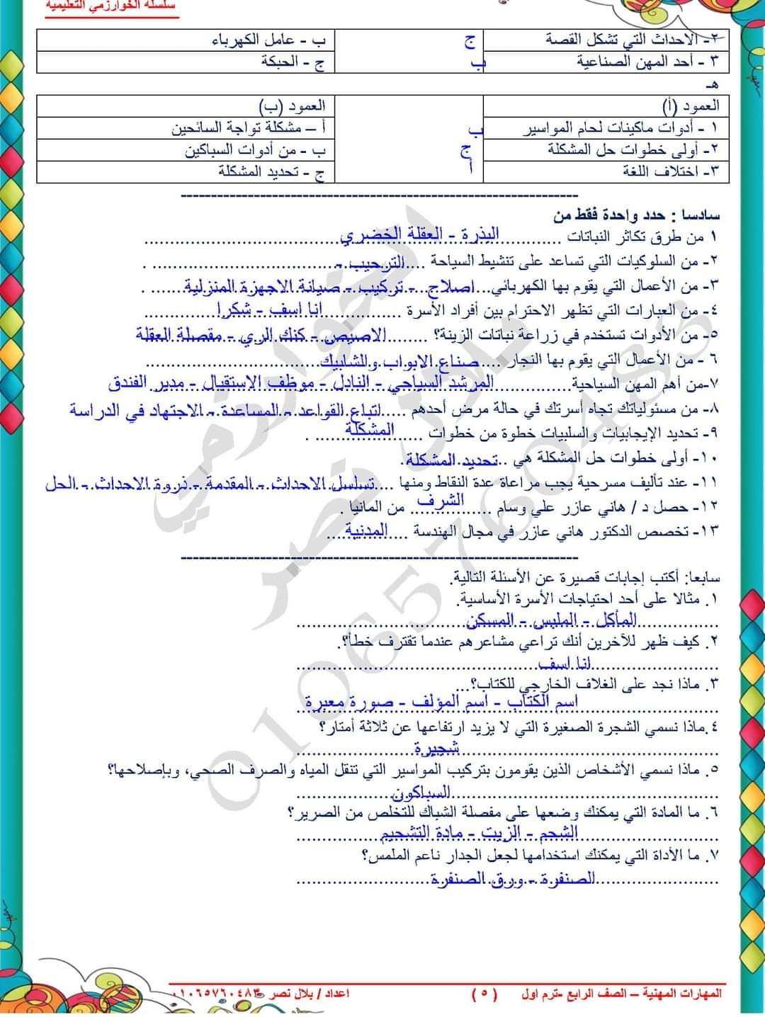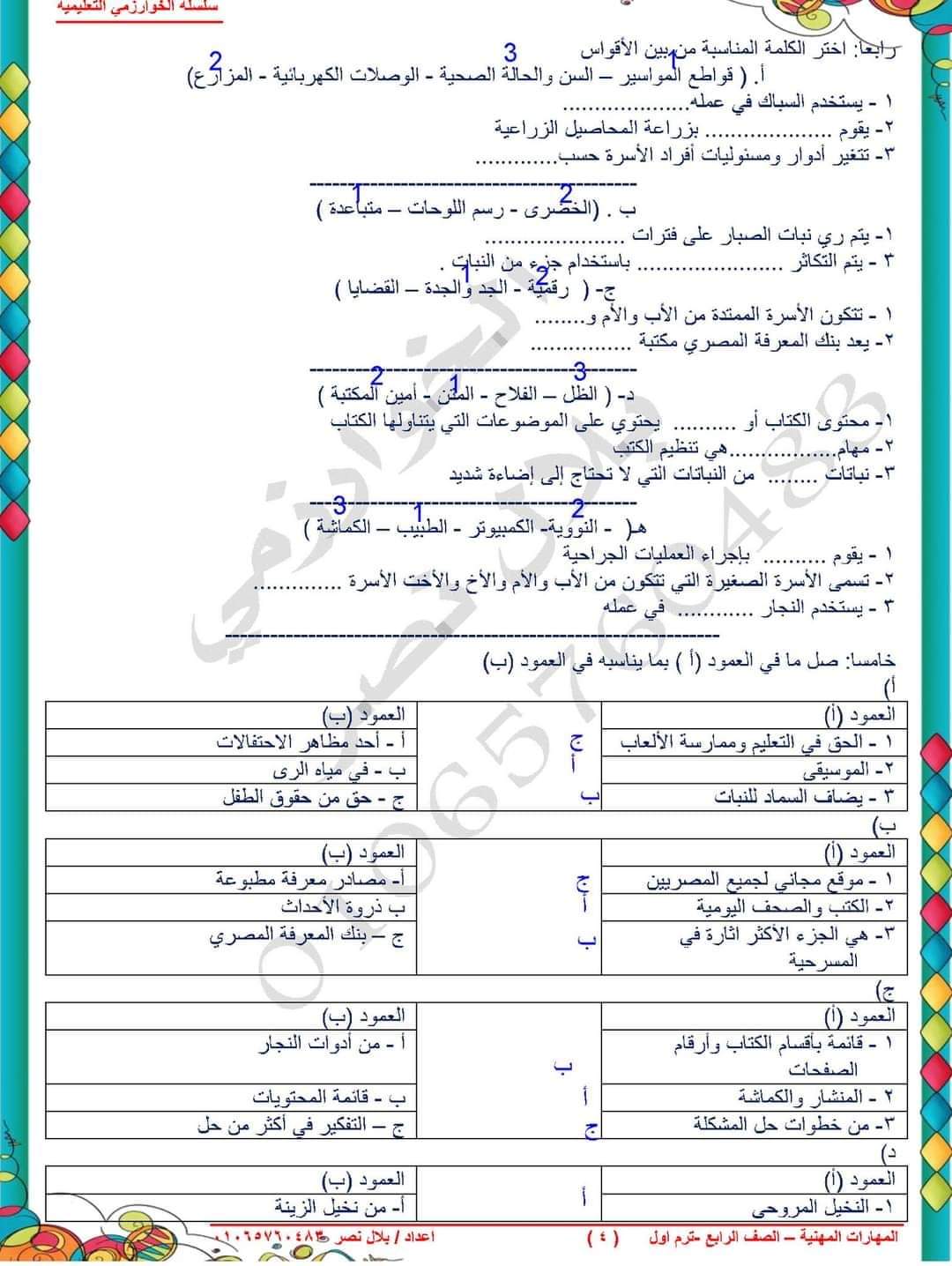 تحميل نماذج الوزارة مهارات مهنية الصف الرابع الابتدائي الترم الاول 2023 مجابة