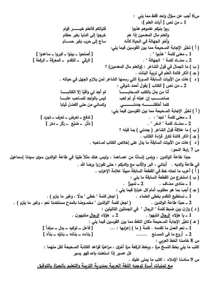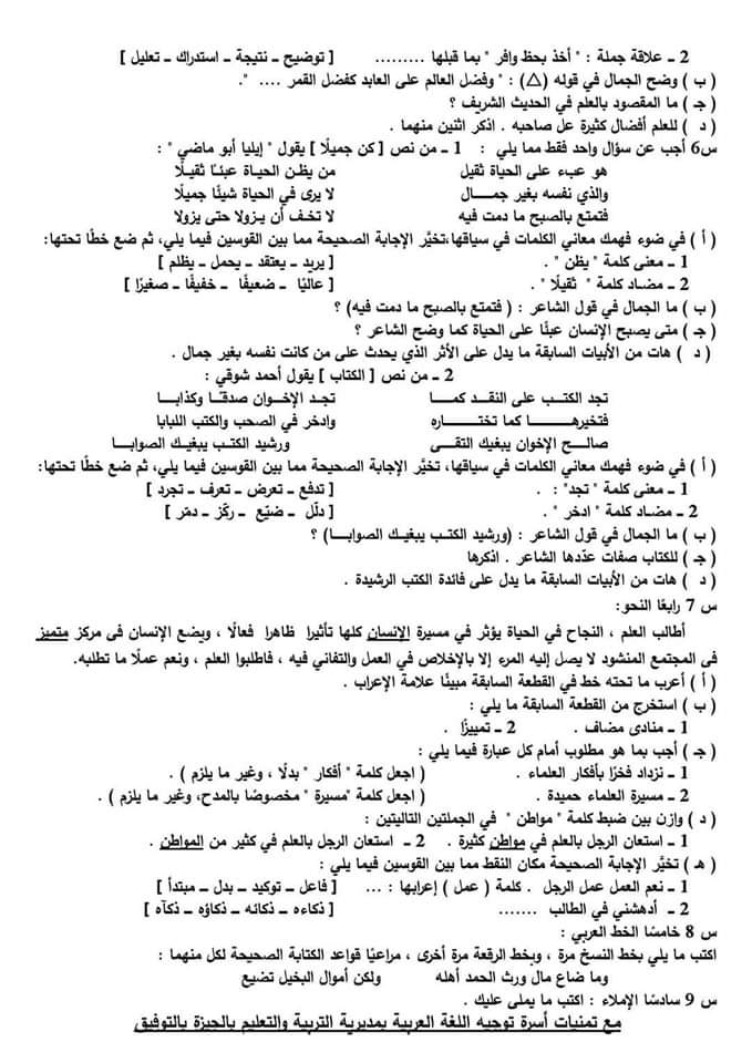 نماذج توجيه محافظة الجيزة لغة عربية الصف الثالث الاعدادي الترم الاول 2023
