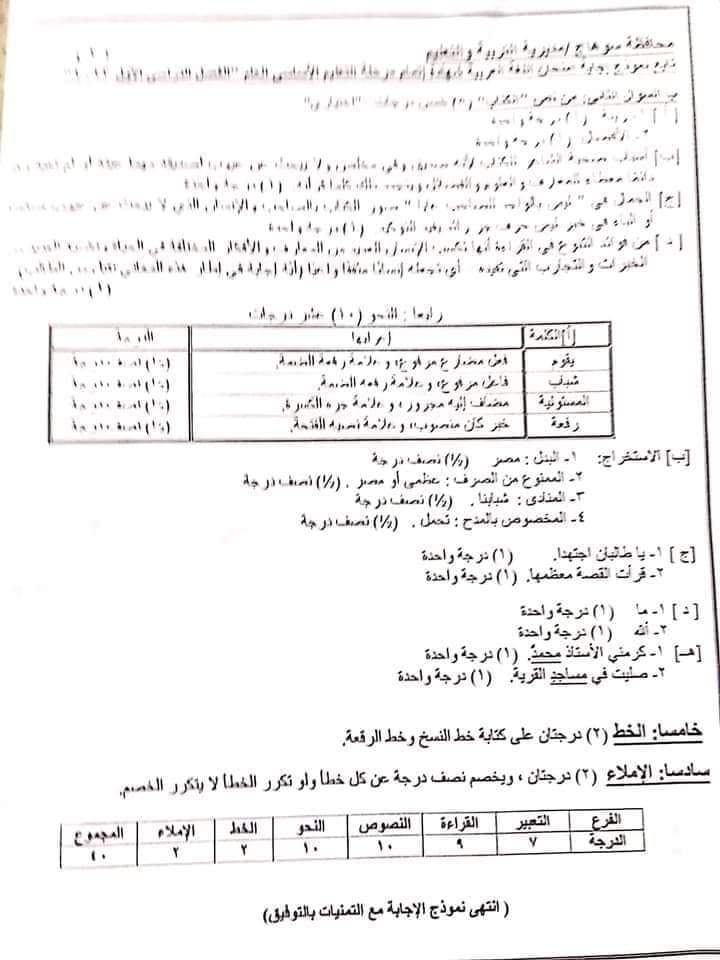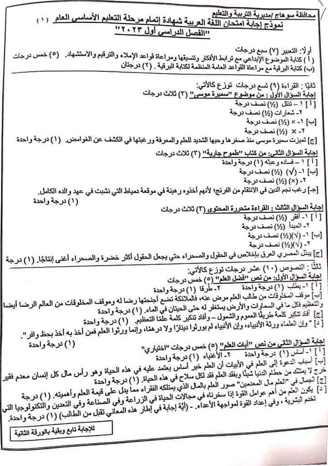 تحميل نموذج اجابة امتحان اللغة العربية محافظة سوهاج الصف الثالث الاعدادي ترم أول 2023
