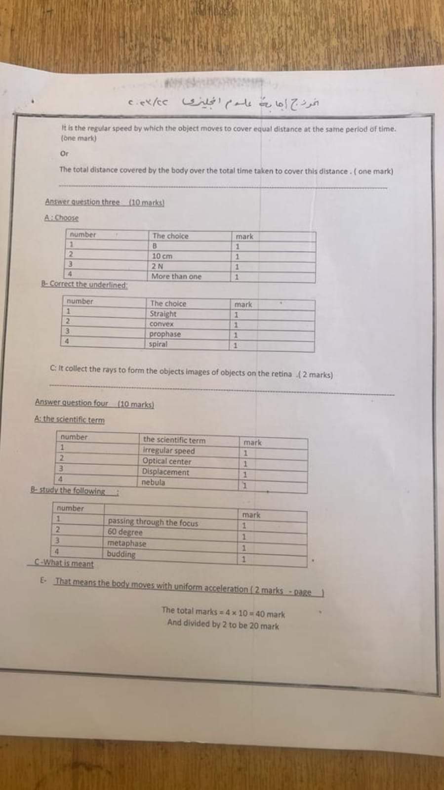 تحميل نموذج الاجابة الرسمي لامتحان الساينس محافظة القاهرة بتوزيع الدرجات