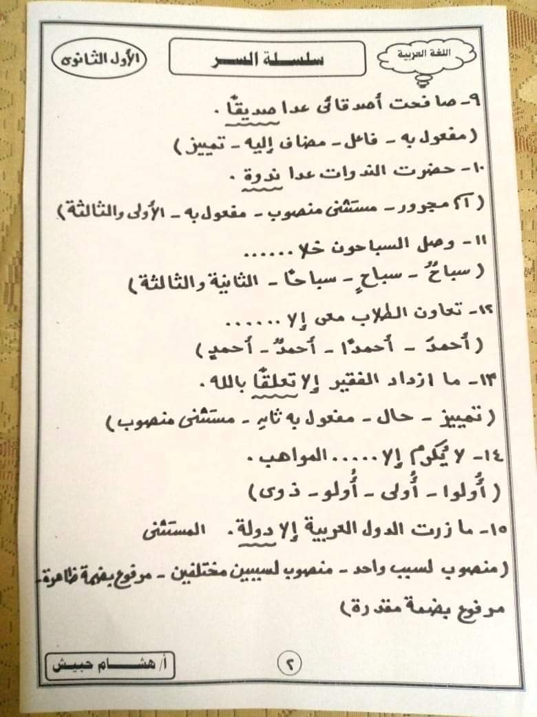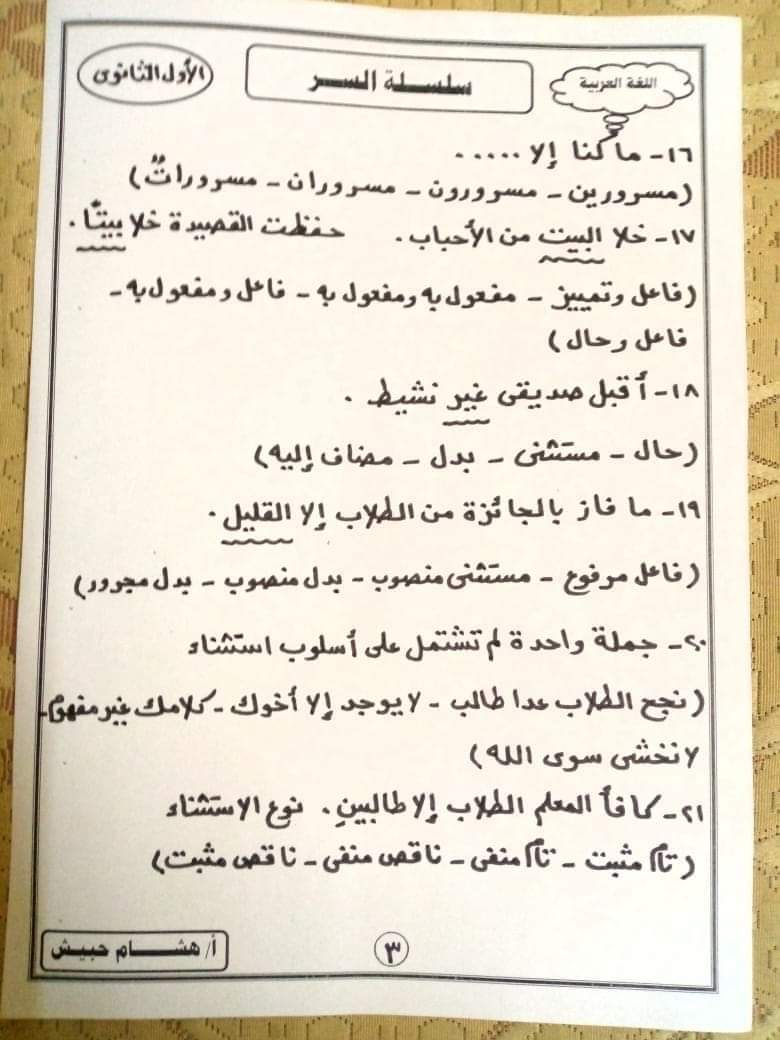 تحميل تدريبات على أسلوب الاستثناء اولى ثانوي + الإجابات م/ هشام حبيش