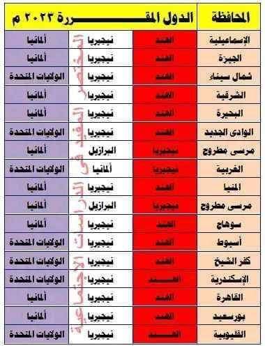 ١٥- الجيزة : الهند ونيجيريا وألمانيا.