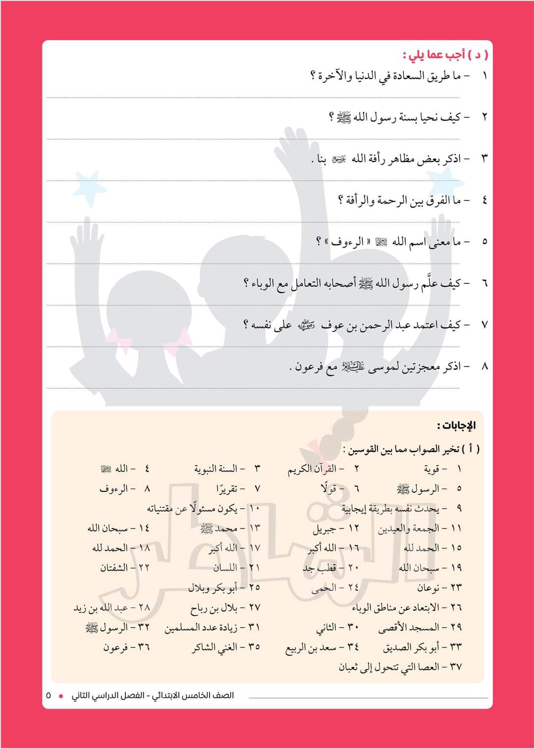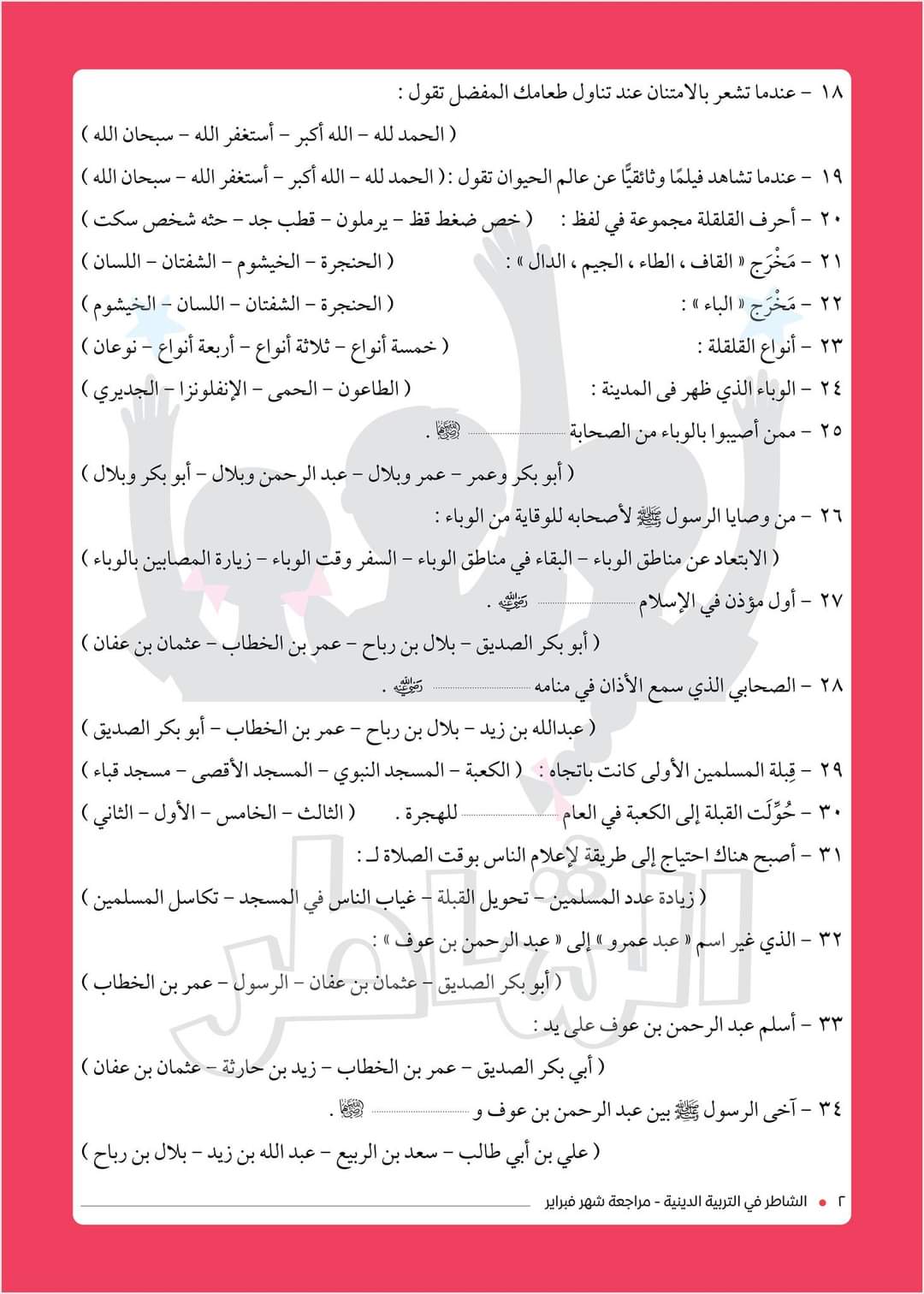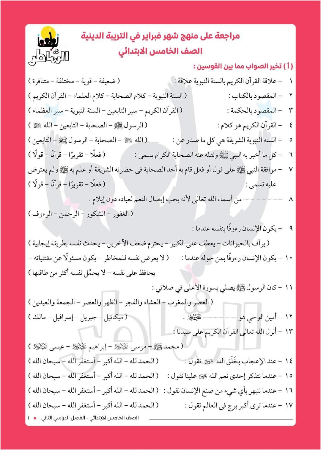 مراجعة على منهج شهر فبراير في مادة التربية الدينية الإسلامية للصف الخامس الابتدائي.