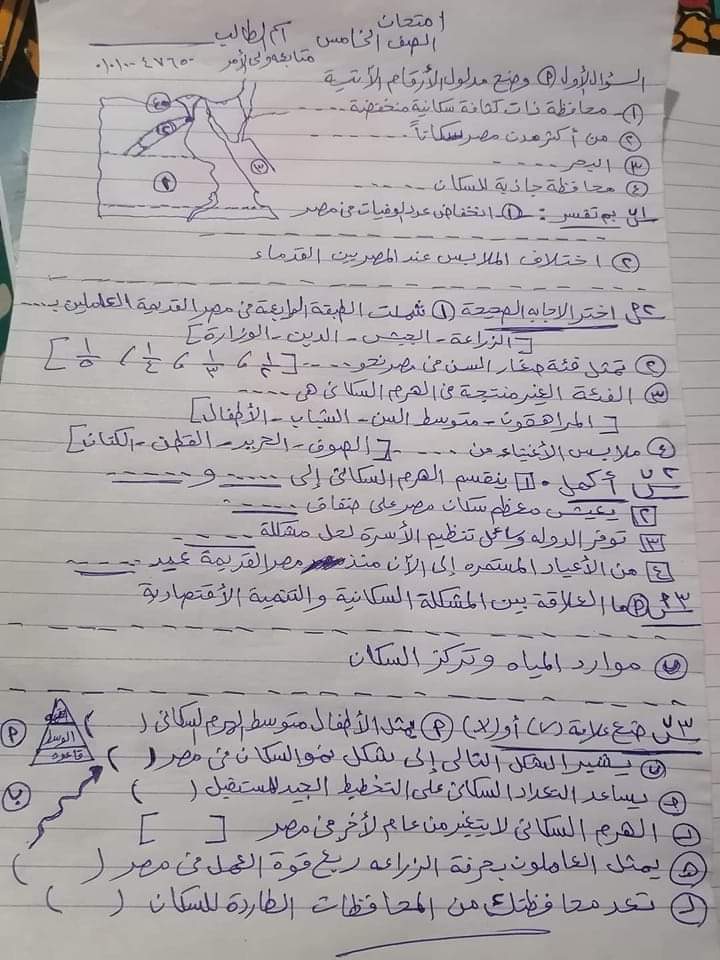 تحميل امتحان دراسات اجتماعية للصف الخامس الابتدائي لأول اربع دروس الترم الثاني 2023