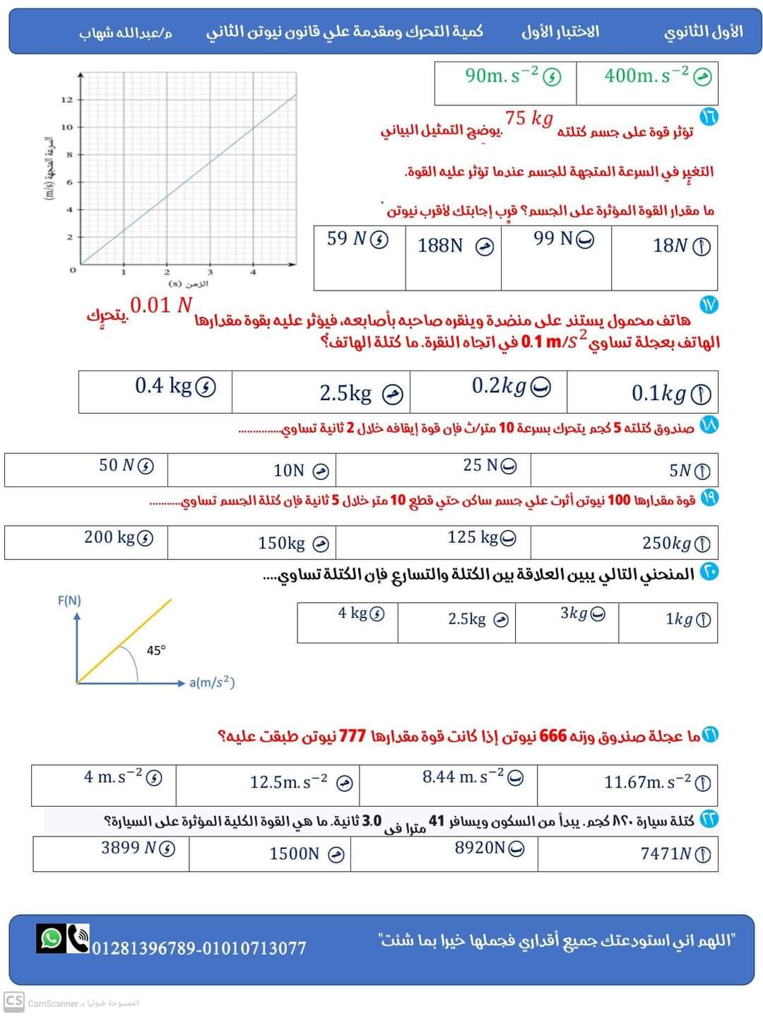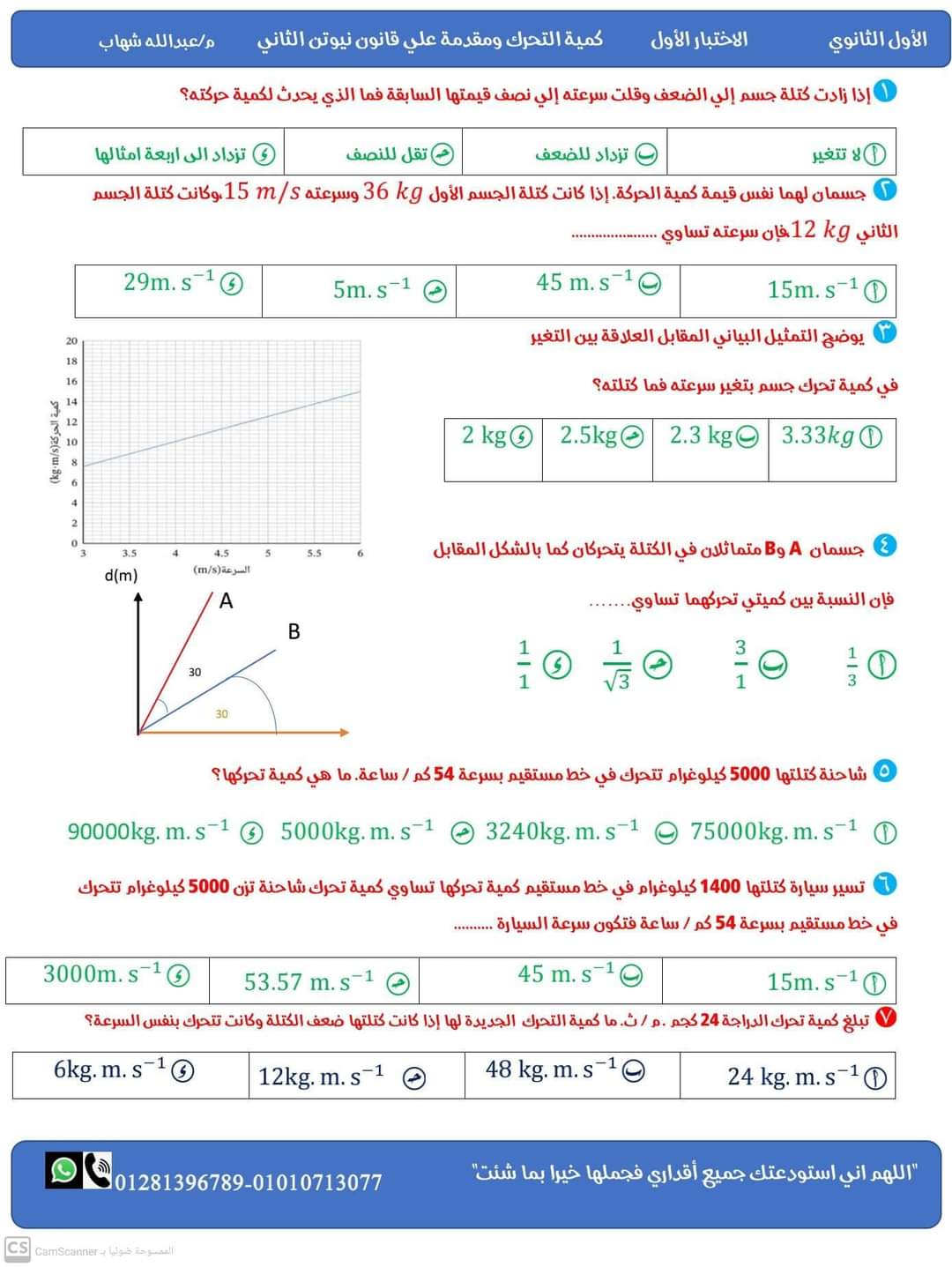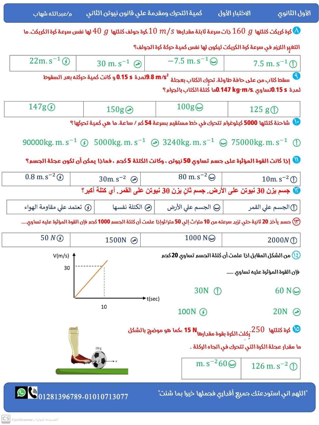 تحميل امتحان فيزياء متوقع الصف الاول الثانوي الترم الثاني 2023