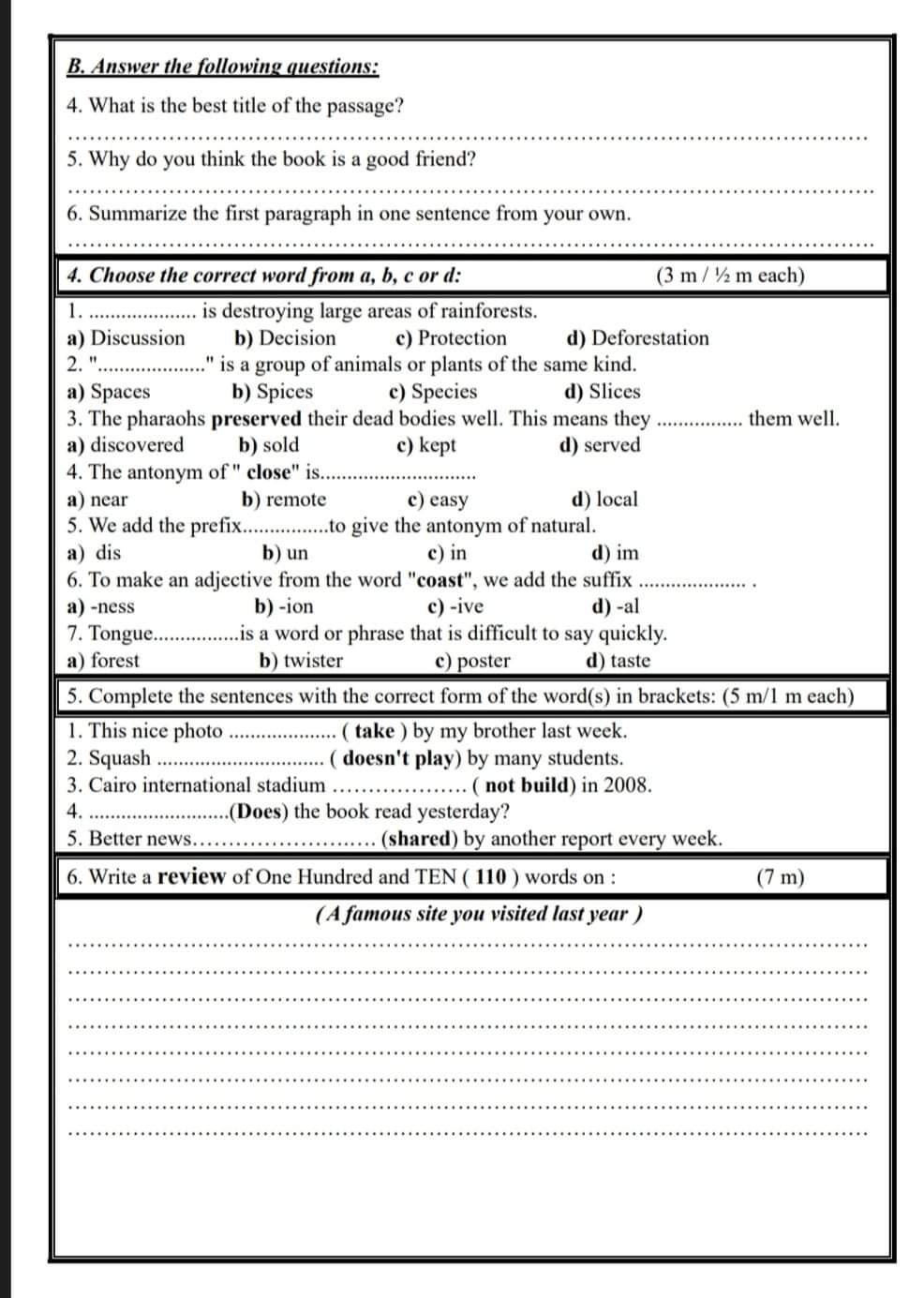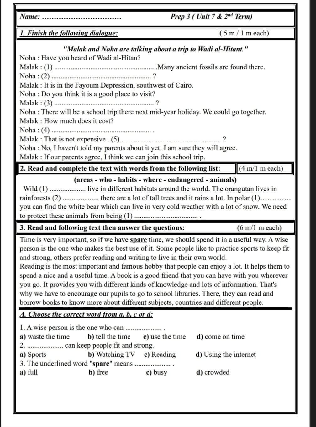امتحان لغة انجليزية متوقع الصف الثالث الاعدادي الترم الثاني 2023
